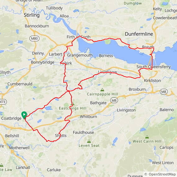 A blustery overcast day but I was determined to get a longer ride done, despite the threat of rain also! I did get lucky though and managed to stay dry for 56 miles, my plan was to head over the Forth Bridge again and when I got home I discovered the bridge had been closed because of Greenpeace protesters abseiling off the bridge... https://www.bbc.co.uk/news/articles/cp868llxlnxo