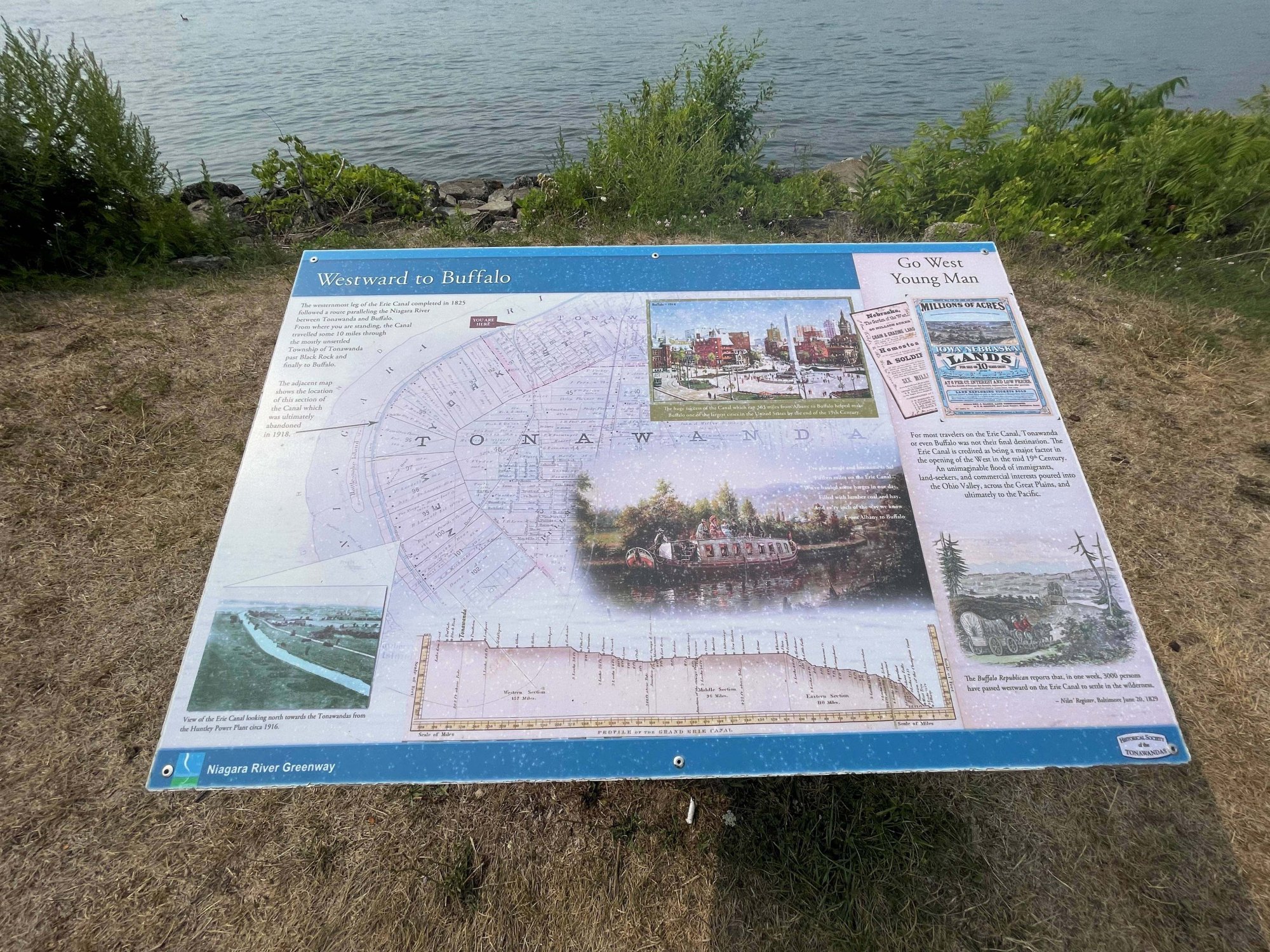 Path goes along Niagara River through Niawanda Park heading toward the Tonawanda's where the Erie Canal met the Great Lakes.