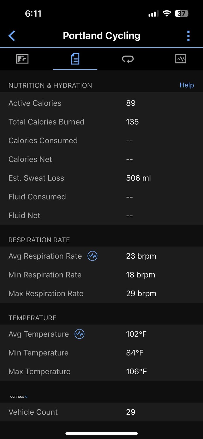 5 months of brutal heat/humidity here in SW Florida!this is this is a day I don't feel guilty cranking uo the assists on my e bike.sucked I did not burn more calories usually around 200 only did 150 or so. had a 48oz bottle of ice water on my back. it was only 8 miles.