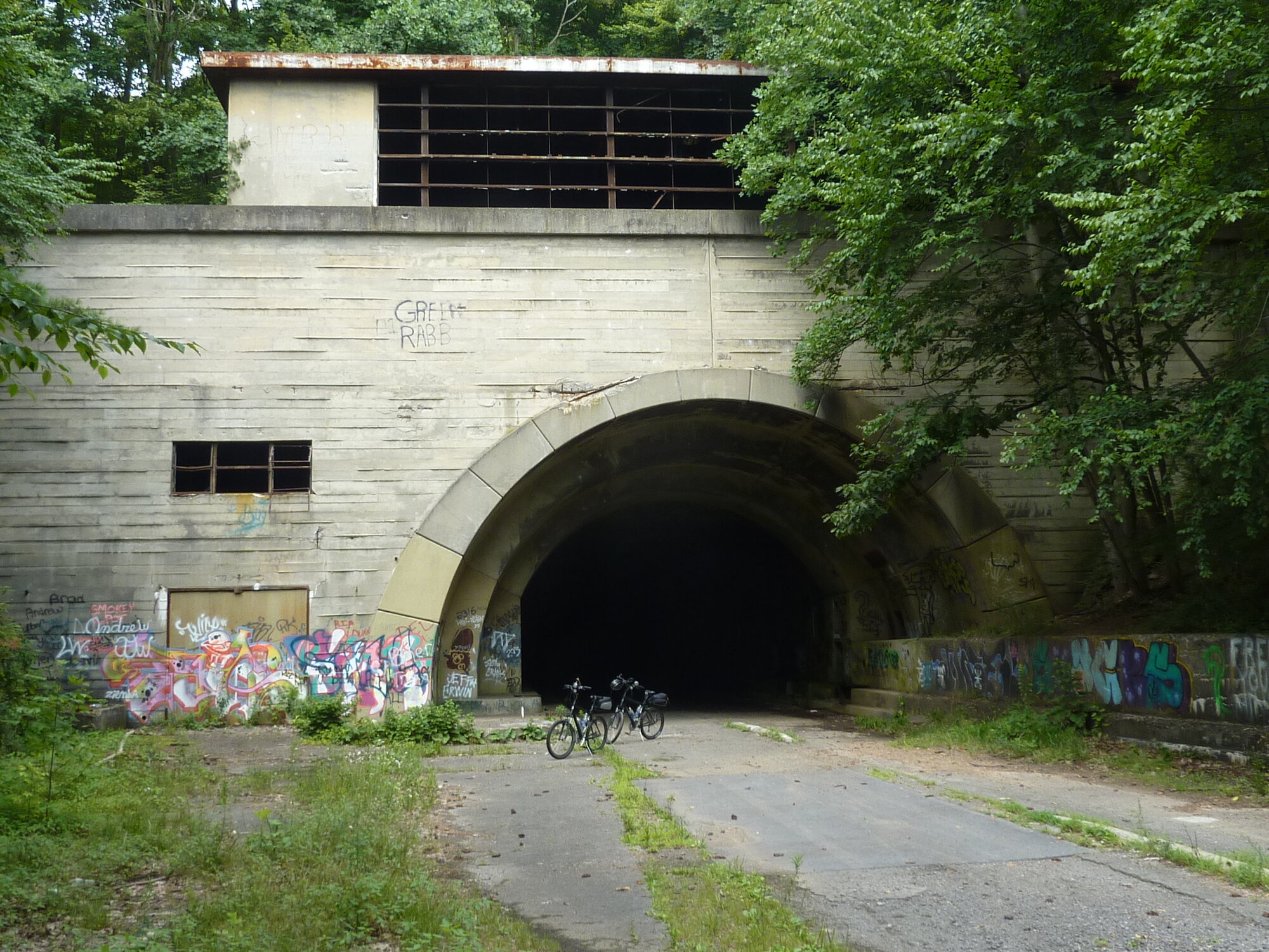 On a couple of occasions, I've driven my 4WD pickup to the top of the steep bank by the barricades to unload. My truck has a skid plate and is set up for off road use though. It's quite rough and risky for normal 4WD vehicles.
