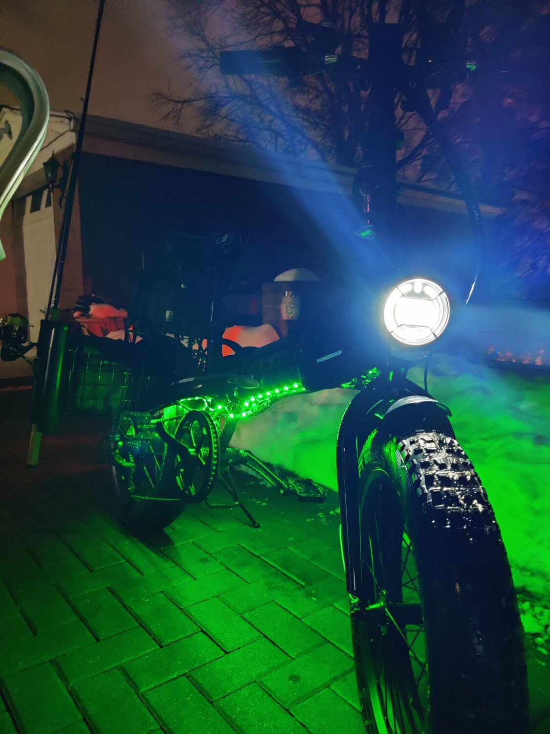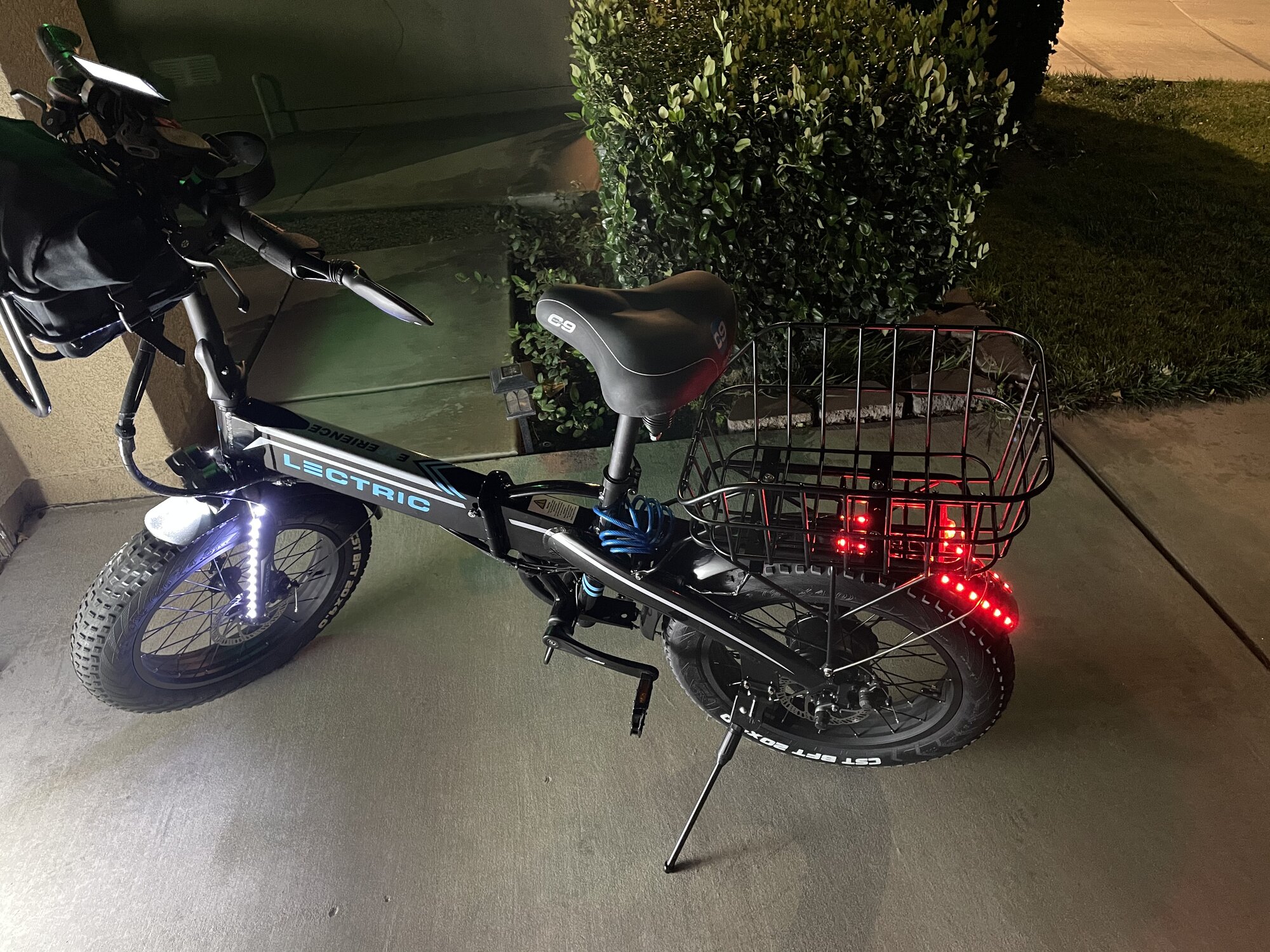 as for the underglow I used a 6ft usb powered led strip from goovee, the control is mounted under the seat, sorry hard to tell from pic angle. connects to my phone and theres a ton of "scenes" to make the lights really disco disco lol its powered by a milwaukee m12 usb adapter but any type of power bank should do. its too bad lectric doesnt give us a OEM USB port somewhere.