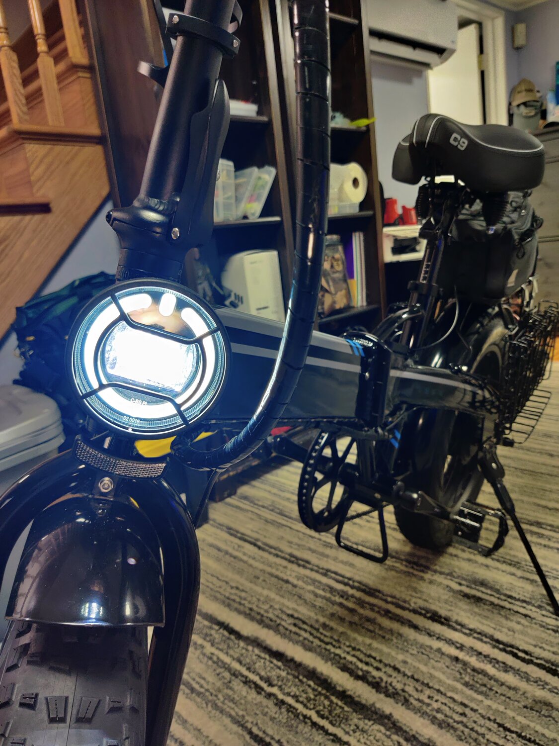 did some upgrades to the lectric today, to anyone whose interested in putting a better headlight on this one from Radbikes works perfectly, same connector as the stock one on the lectric and its 10x brigther. i have yet to figure out how to only turn on the angel eye part of it.