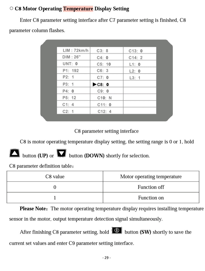 Been down this road, you'll have to trust me. The display is able to display a temp, but that doesn't mean there is any support for it to get a signal anywhere else in the system. From the wiring coming from the motor, to the circuits in the controller, there is NO motor temp support. But don't take my word for it, I'd love to be proven wrong....go for it!Actually the KT controller/display will show motor temperature if your motor has a temperature sensor.