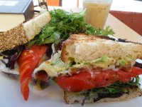 There is a volcano of melted cheese under the other toppings on those California fries. This is what I eat for breakfast before a ride. The BLT has guac and queso so it is actually an LGBTQ plus sandwich. The queso is local brae that is melted into the free range apple smoke bacon.