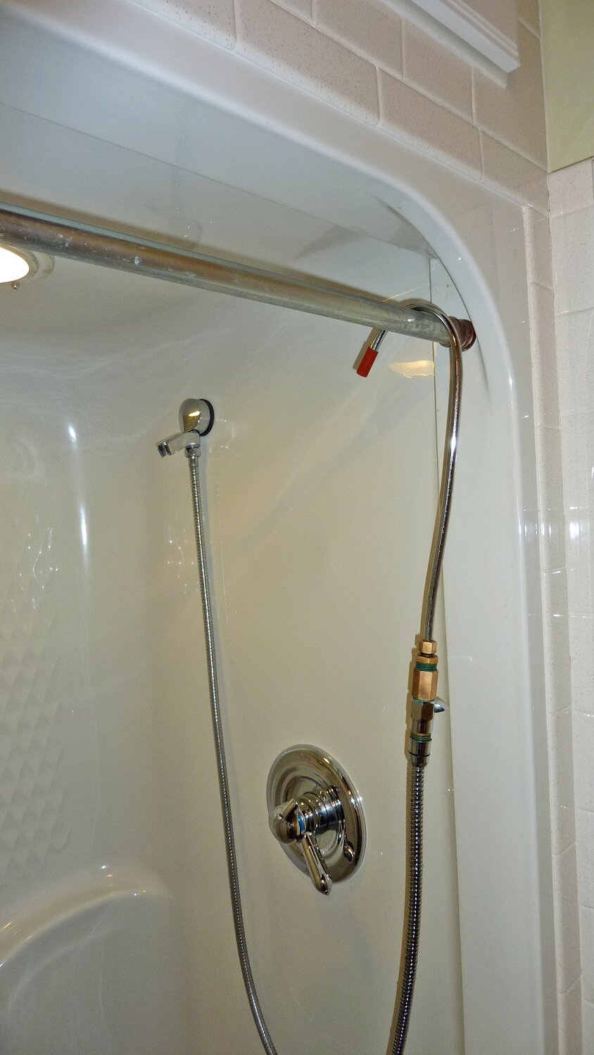 In our case, the toilet is close to the shower so I made this simple "wand" attachment from a few parts I got at Home Depot: