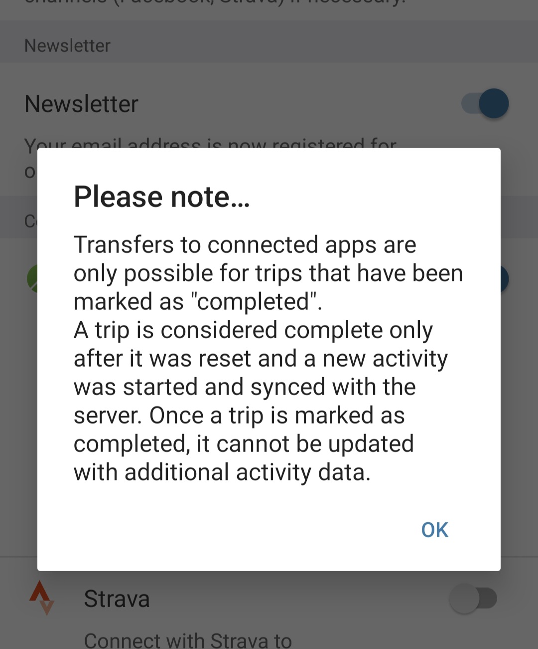 Confirmed today. Mine was set to 'trips' and was missing Friday's commute home. Changed it to 'rides' and went to church and Komoot got Fridays ride and this mornings.
