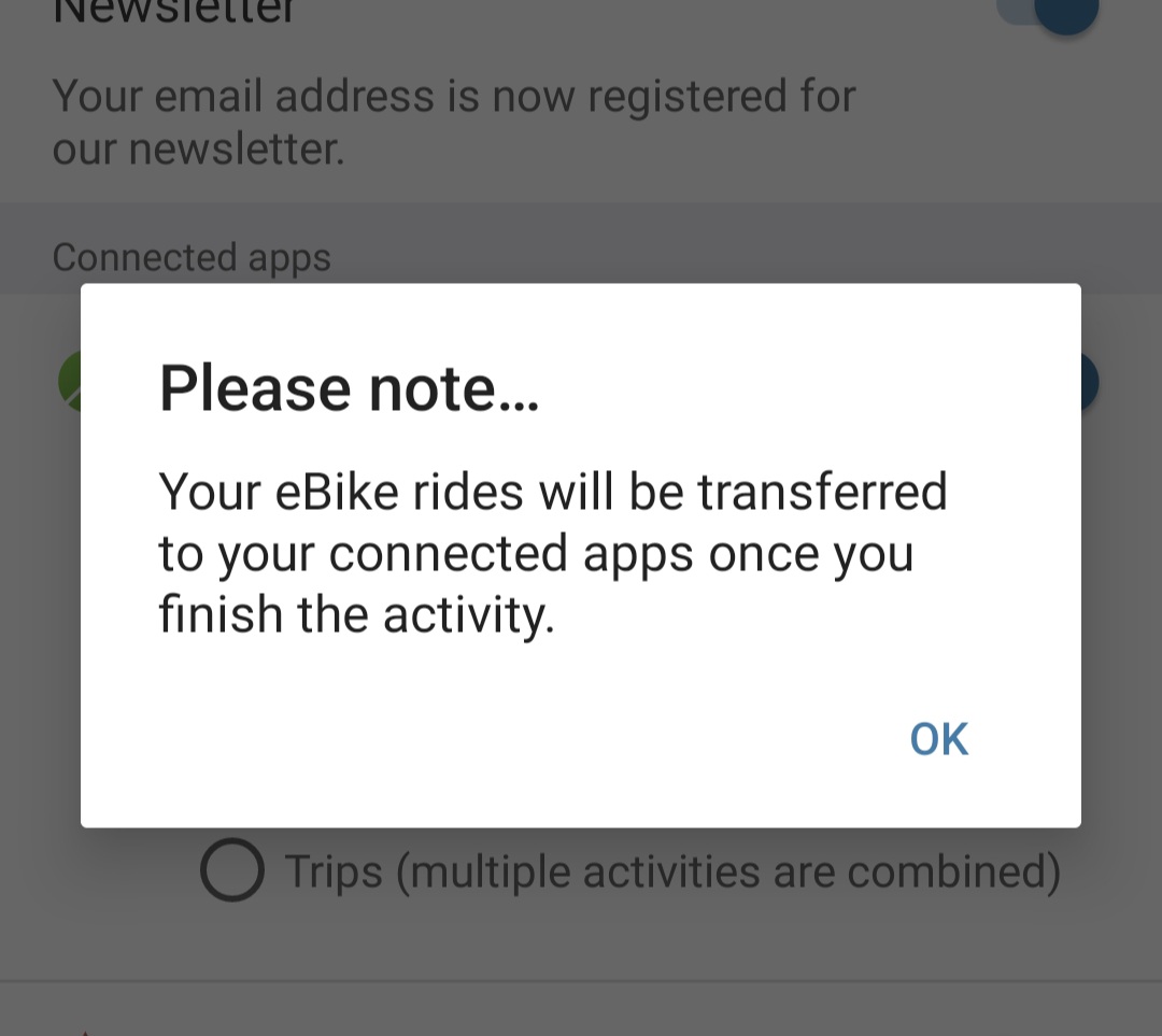 Dont really use Komoot, but I think you get that behavior when Ebike Connect is set to sync trips instead of rides.