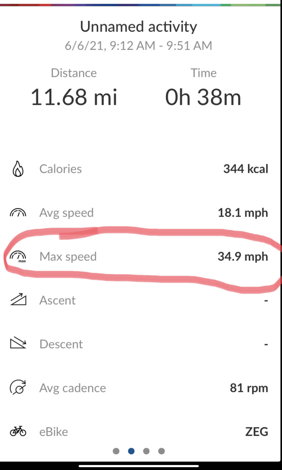 W/O PAS @ 28mph-34mph on a 60 or 65lb ebike !!! WOOOHOOO