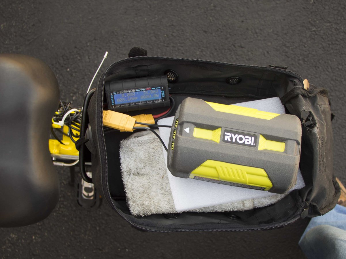 We drive a lot of rail trails and not all are smooth. This method would still slowly tug our trunk bags down after long rides (which is the purpose of two batteries) and I wasn't satisfied.