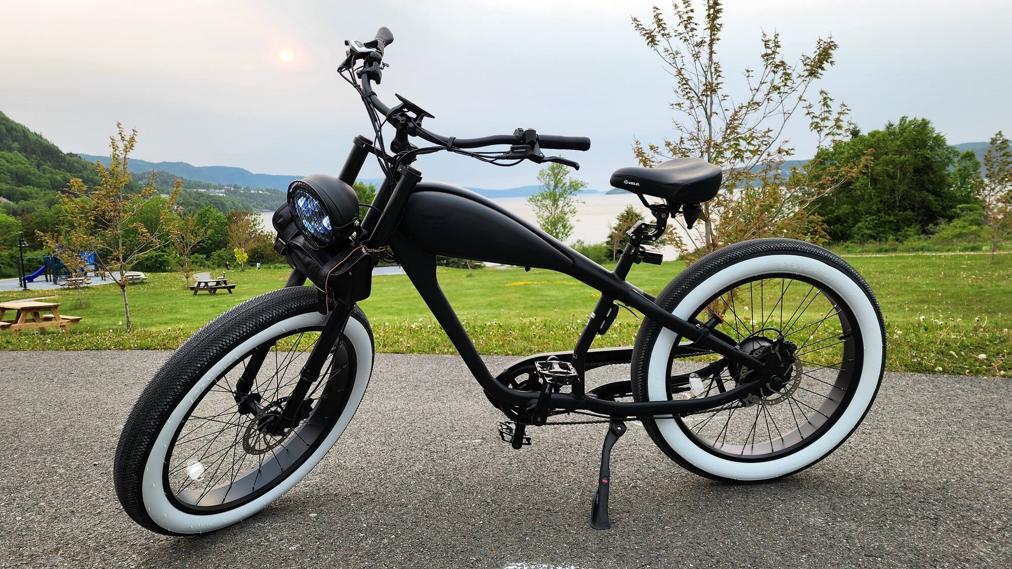 Here's ma baby, 2023 cheetah plus with upgraded whitewalls, Himalo suspension forks,suspension seatpost,front tool bag rear smart brake lights.