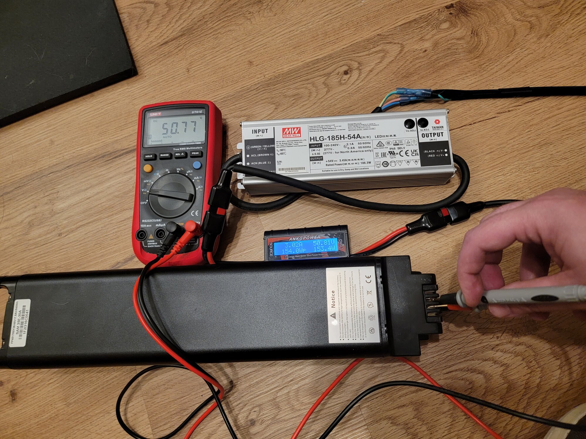 Eg ride today 30.17 miles, 3094 feet elevation. All I really know 48v17.5ah Samsung 35E pack's ending voltage was 47.0v, ~3.615v/cell. Used charger and power meter reports 10.54ah and 544.88wh. Cross referencing some stuff that seems pretty reasonable.. least close enough to me.