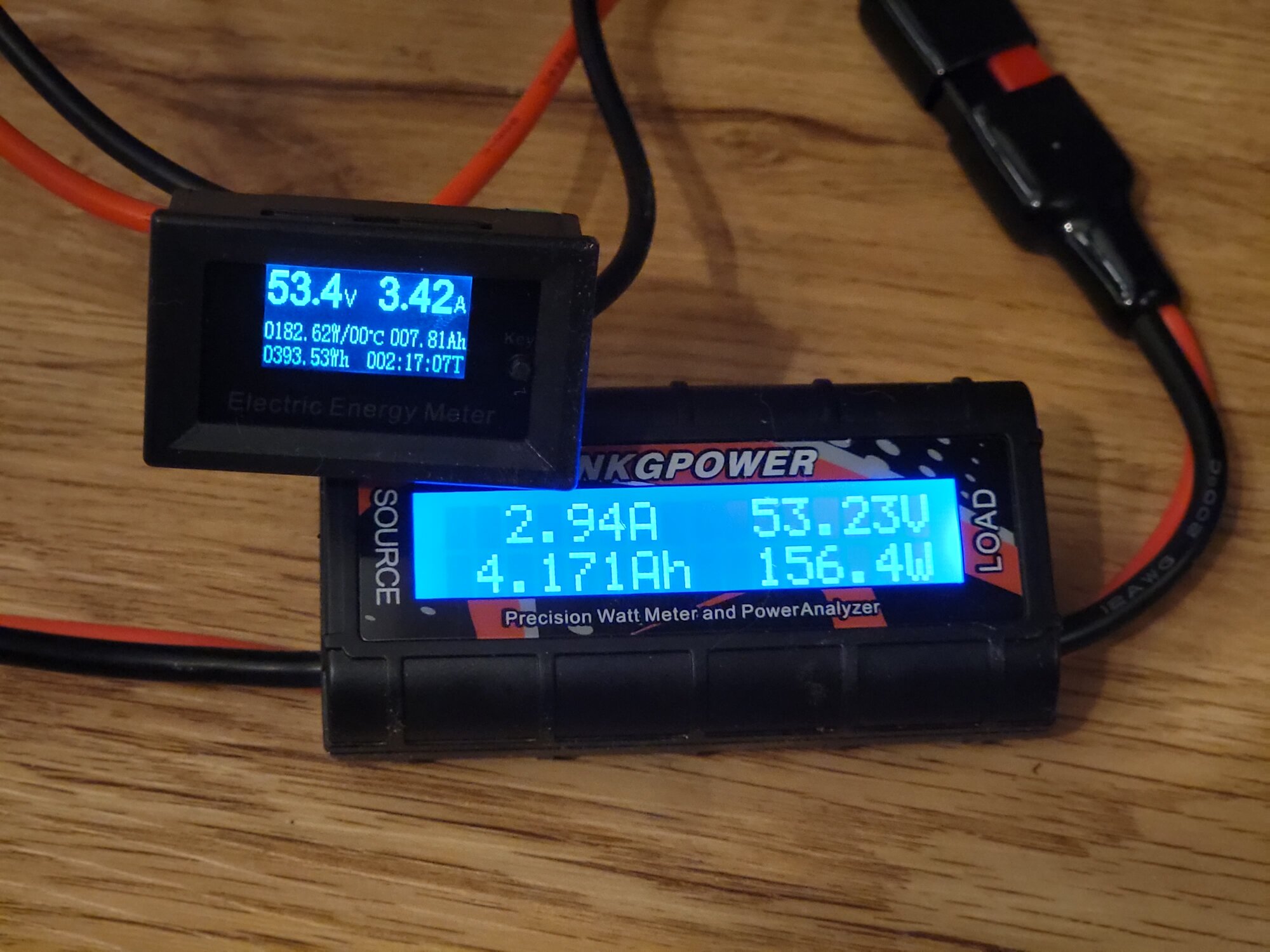 And this is just after when I had two power meters inline, the new one draws trivial power. You can see how volts is pretty close, amps is bit off, but then aH is way off.