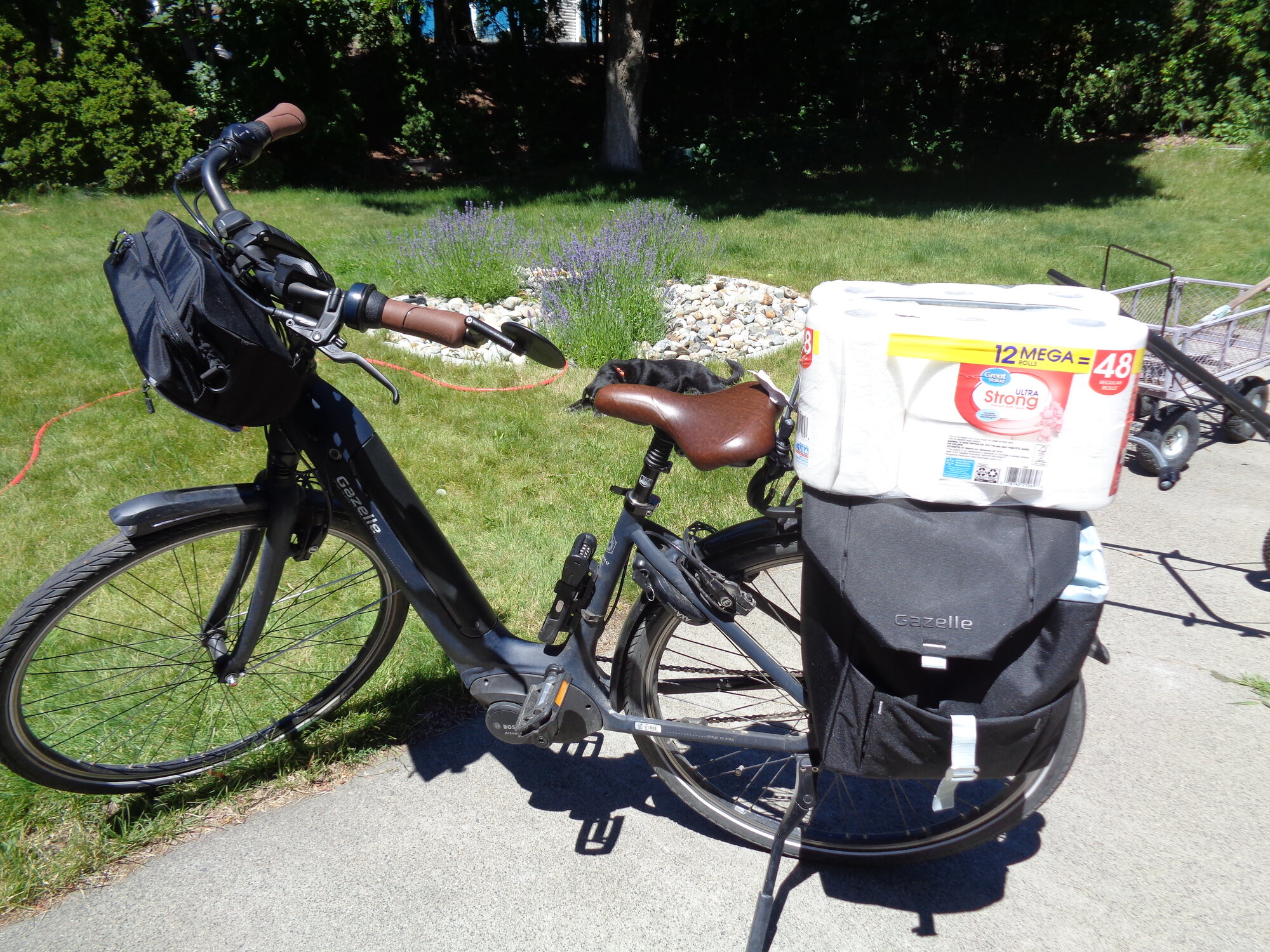 - You could also lay the bike over (toward you) and swing your leg over. This works well as long as you don't have much weight in a trunk bag that sits high on the back rack, which can cause the front wheel to come off the ground at times. Mostly not an issue, but I have had this happen a couple of times when I had some heavy items in the trunk bag.