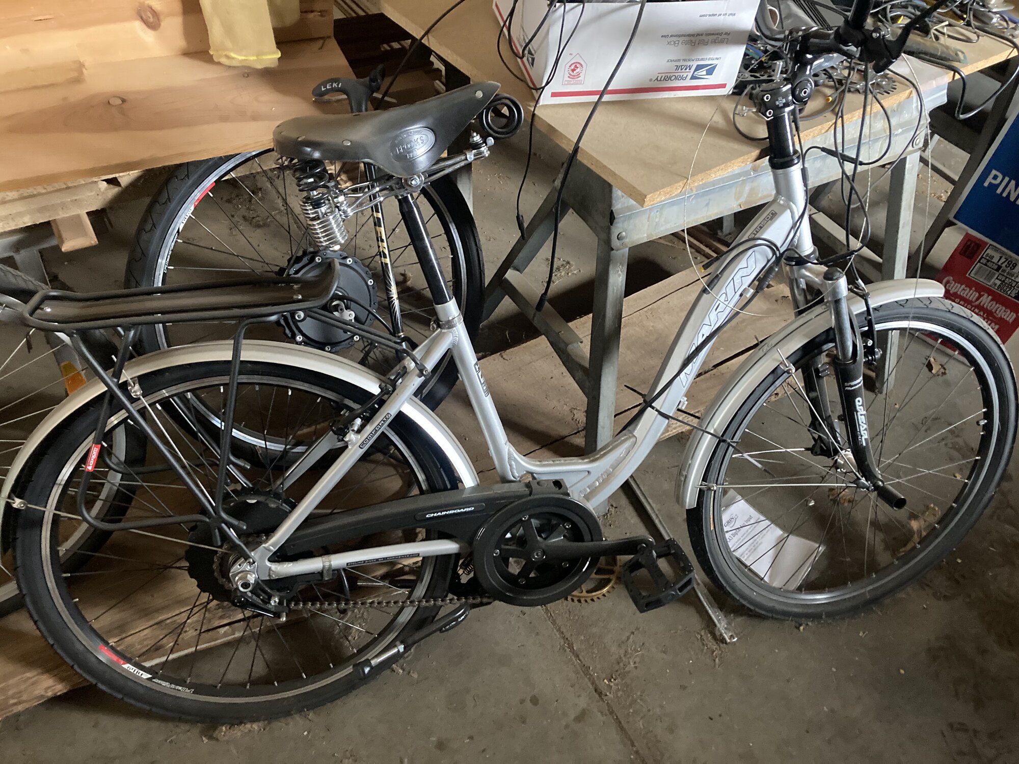 @VoltMan99, You would need to cut off the spider then use a 110 to 130 BCD spider to reuse this chainring. You will be better off installing the kit and just taking the matte black crank arms to someone such as a professional knife sharpener to get them polished out. Here is a through frame wired bike. It is a spanking new Marin. See the blue display? Note the lack of ugly connectors on the HB. It is a Class 3 ten speed. Enter into the Zen Garden of Less being More.Man that’s awesome! Can’t wait to do the wife’s bike next year! The internal wiring really makes a huge difference in maintaining the classic aesthetic- paint that bad boy aluminum silver and it’ll be spot on with my wife’s bike. Do regular crank arms fit ? I’d want to figure out a way to attach this if possible: