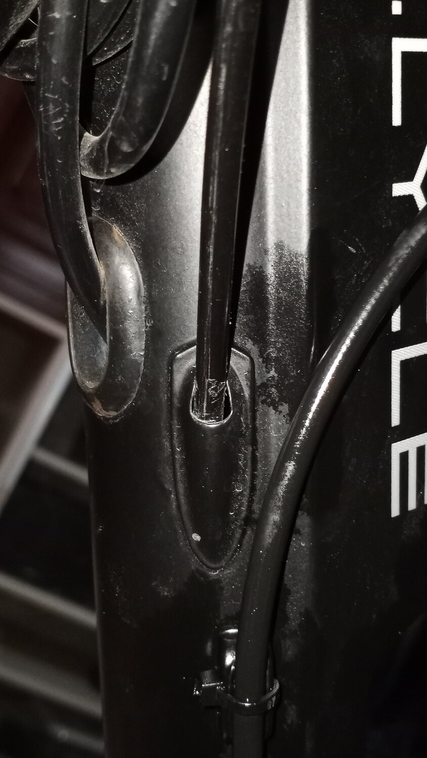 I was thinking inside the frame in the hollow space above the upper battery bracket where the power cable connects to the battery bracket.