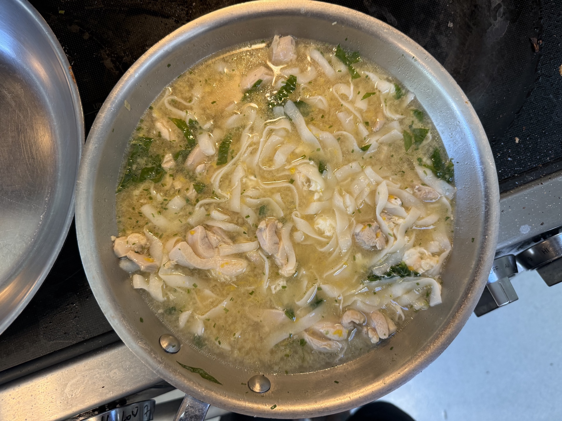 My body doesn't tolerate carbs and not much fat either. So this is my chicken noodle soup that's high in protein, very low carbs and fat, but lots of flavor. The amounts I use are for one serving, but it's easy to adjust things. I use 1/2 box of unsalted chicken stock and bring it to a boil with some of the chicken bouillon ( I like the Better Than Bouillon jarred stuff). this gives more chicken kick and adds the salt. I often put in the roasted veggie stock too. Right now, fresh basil and some seasonings like Fox Point seasoning from Penseys. Then, when it is boiling thin thin-sliced skinless chicken thighs, about 1/2 pound. Cook it for maybe two minutes till most of the pink is gone. This may be hard to find I use tofu noodles; they are low calorie and low carb only 20 calories. I rinse them and cook them for 2 minutes (check the seasoning as the noodles suck up the flavor)take it off the heat, and I like to stir in a egg or two.