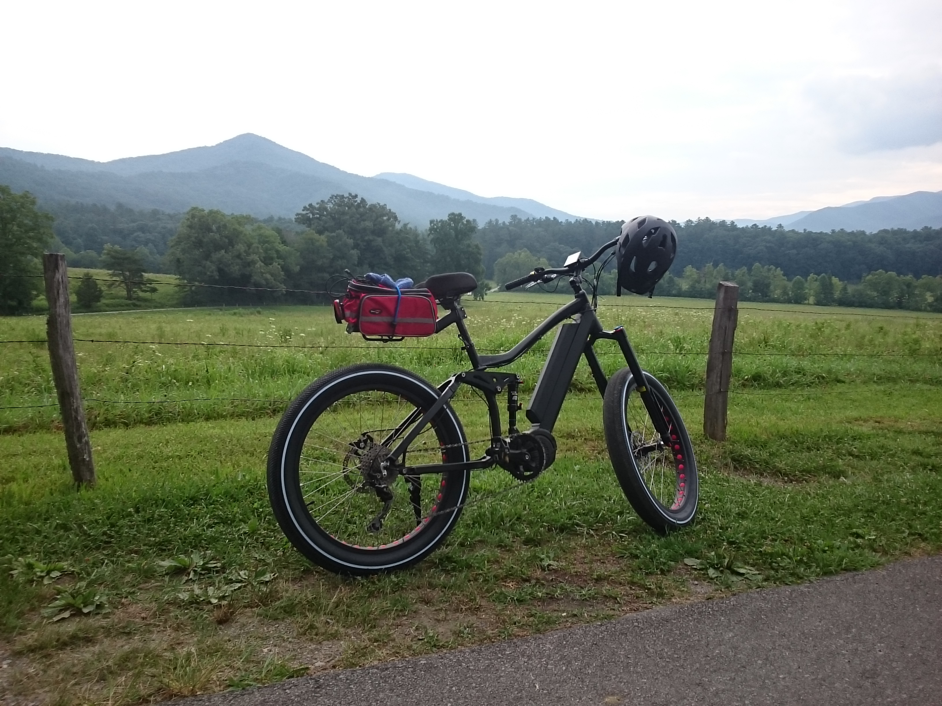 It is a fun bike. My old bones can't take riding around in the snow (too cold) but I am enjoying myself this week. Here's a pic of me and the SuperBike cruising Cades Cove in the Great Smoky Mountains National Park. 2-3 people a day ask me about the bike. I wish Biktrix had put their name on the bike because I have to keep spelling out the company name for folks!