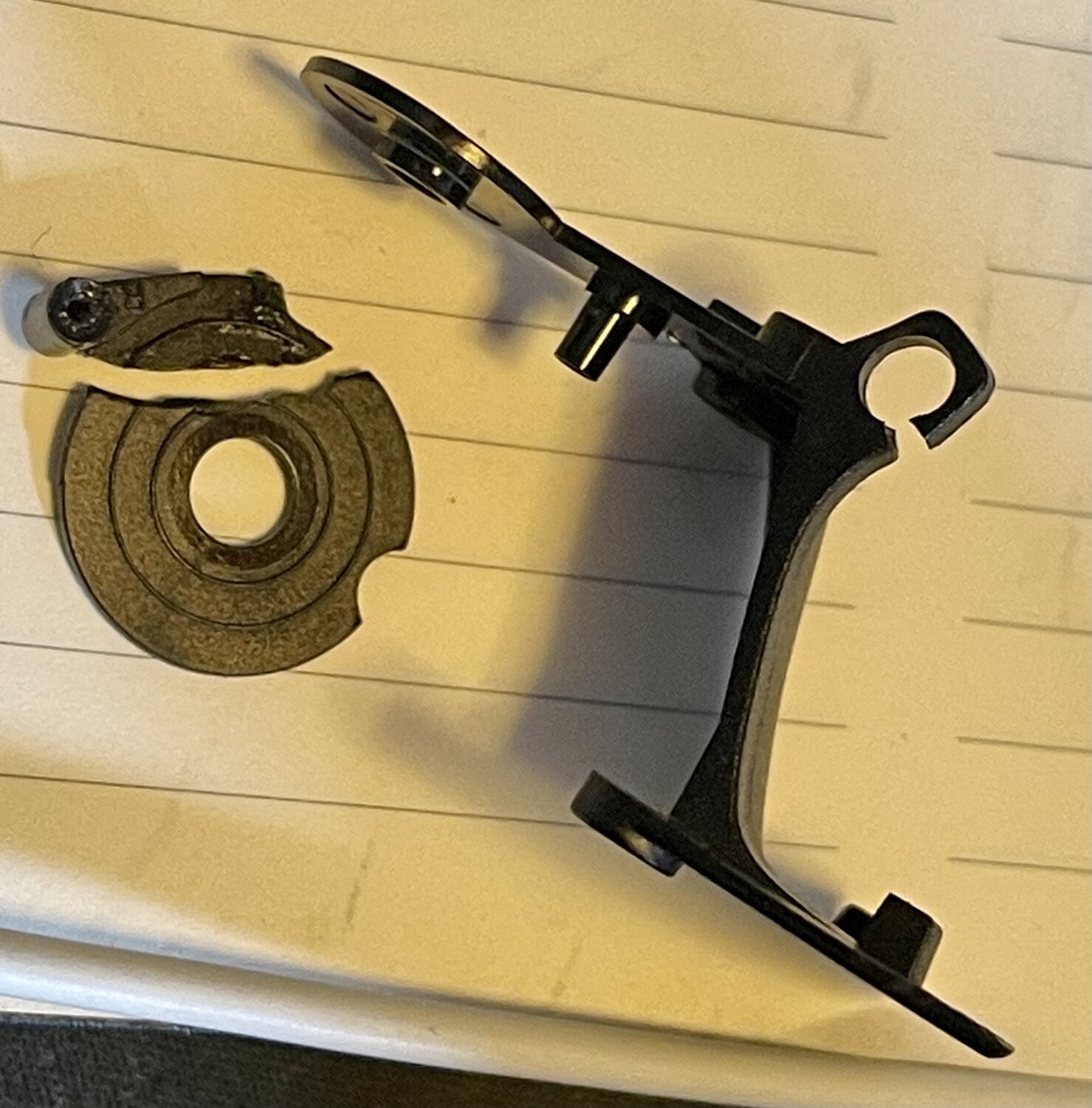 I have to say that my bike down shifts much easier since the cable was replaced and the cable guard shortened. There is still a good amount of resistance but carpel tunnel inducing pressure is no longer required. I'm sure all the pressure required to shift is what broke those parts.So, I found what’s broken, 2 parts.