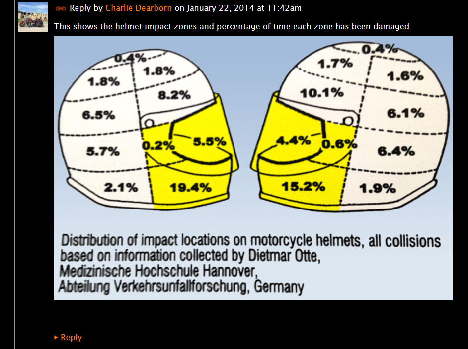 Yeah that 19.4 % seems low. I always seem to lead with my chin . I really don't want to wear a full downhill helmet but on the other hand I really like my front teeth.IMO bike helmets are inadequate.