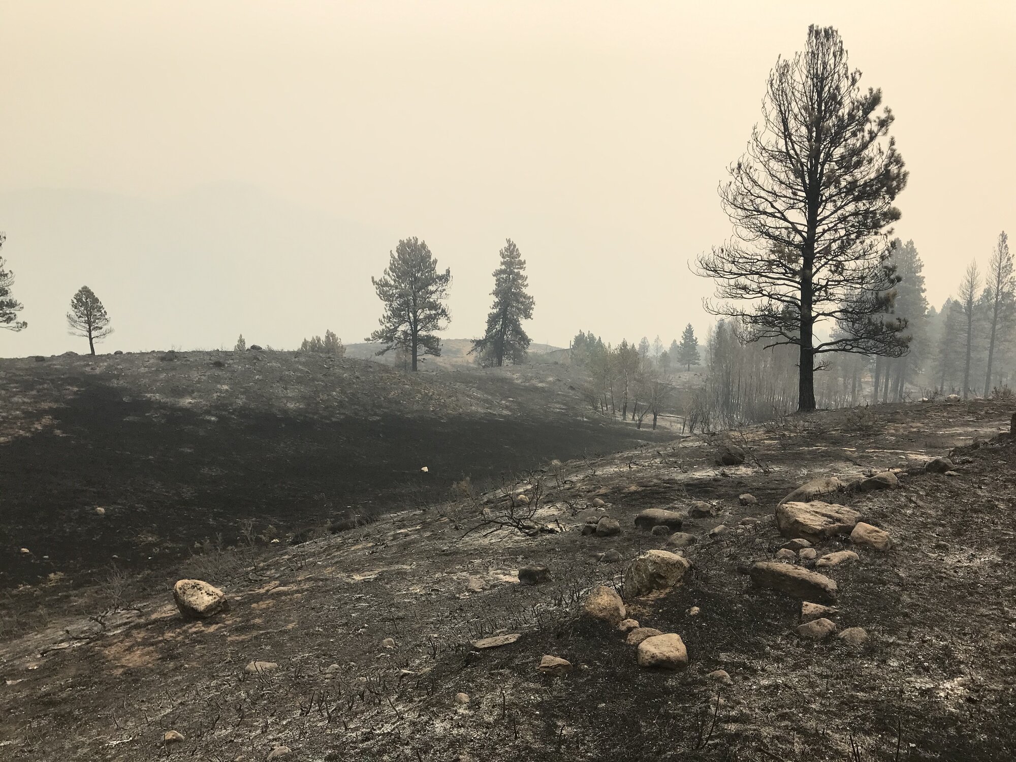 A lot of that will be full of flowers next spring. I just need to replant grass seed in the miles of dozer scars and take out some of the worst-damaged trees (mostly so they won't fall down on something important) and it will be good. Cleaning up the burnt outbuildings and some damage around the house will take more effort.