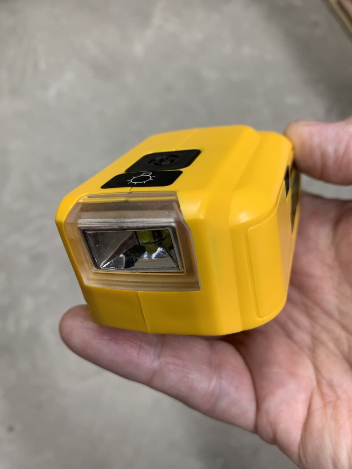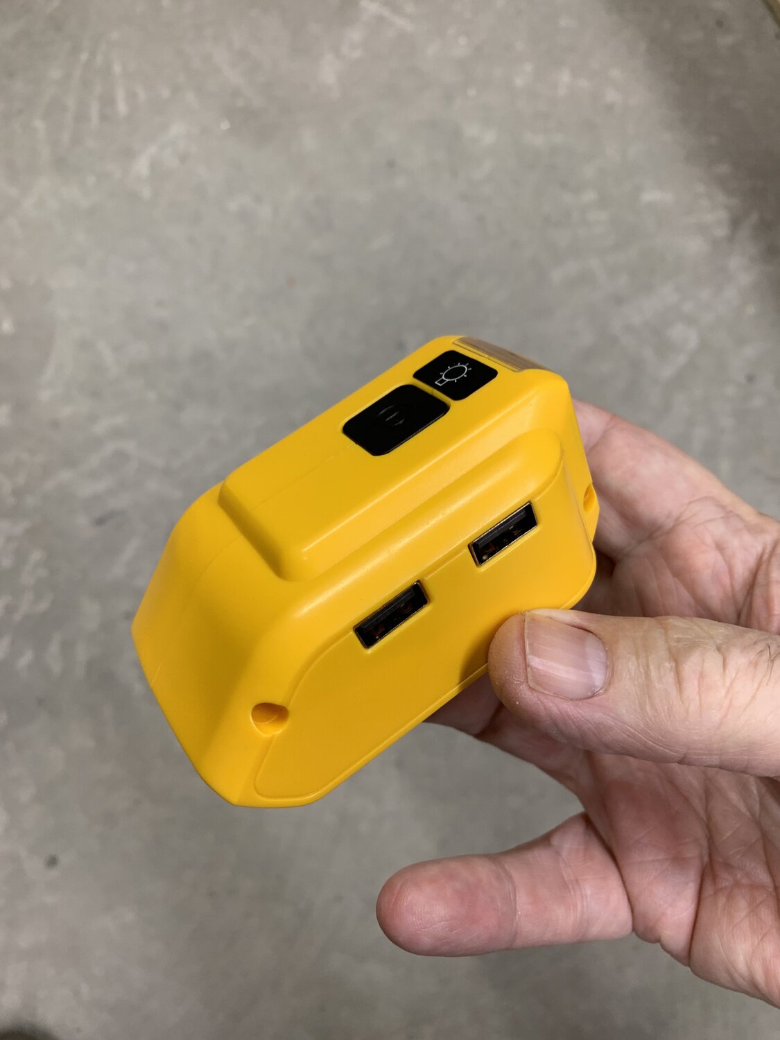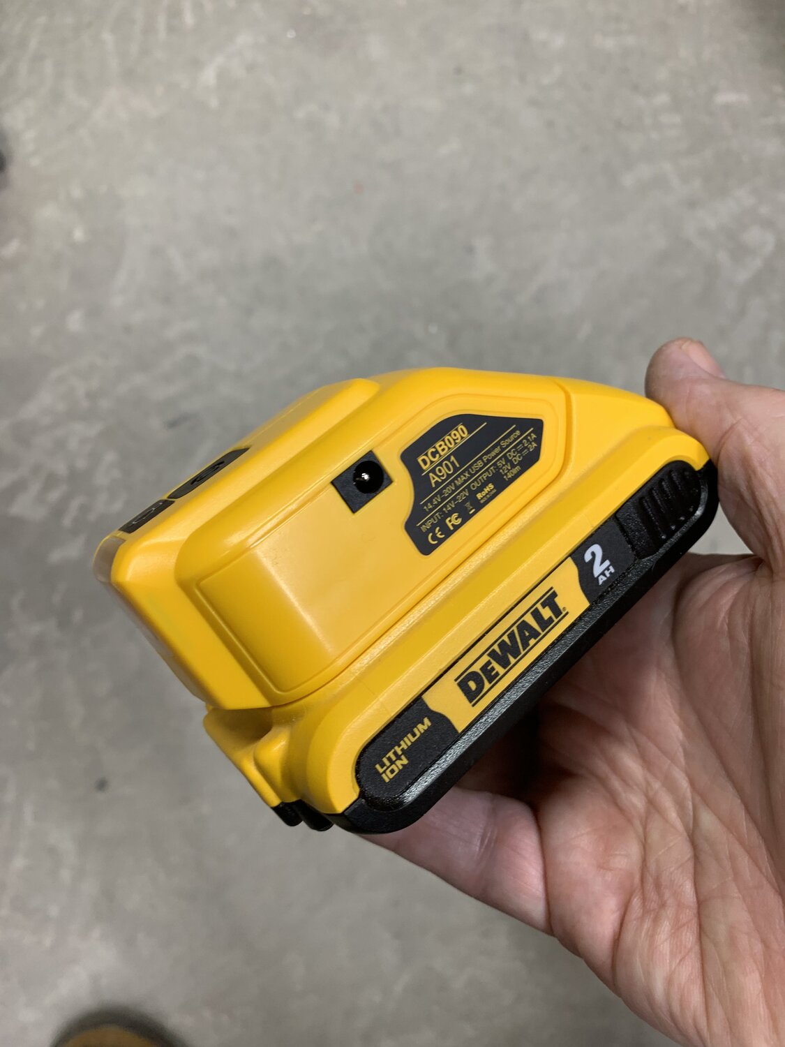 I picked up one of these cordless tool battery USB adapters recently. I use DeWalt batteries but similar adapters are available for many other brands as well.