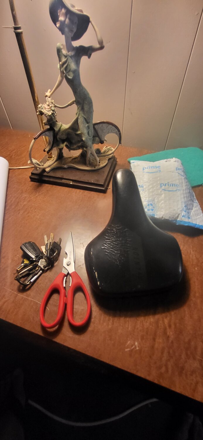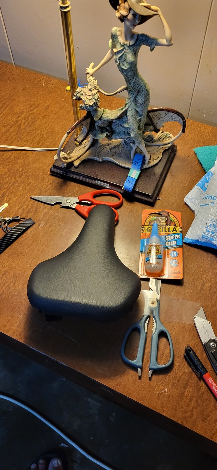 I bought this leather patch for $20 buck for my saddle. Originally from my 1st ebike an aventon level cruiser style, I like it so much to DIY new upholstery. I did it on 1st attempt. Oh zoom on old saddle it is cracked.