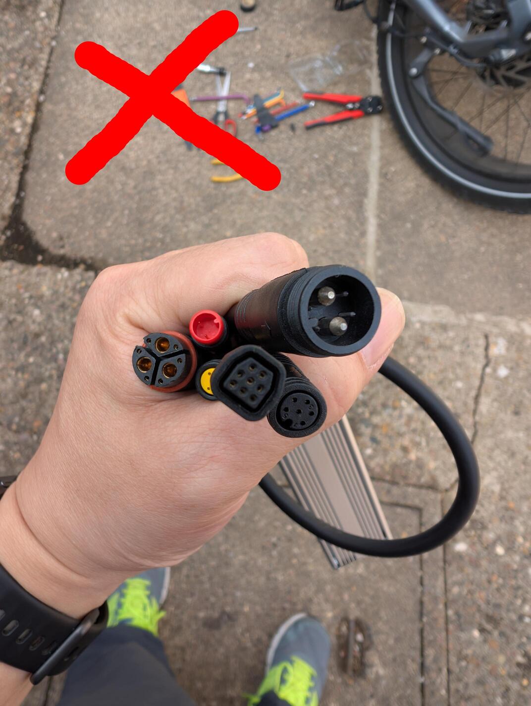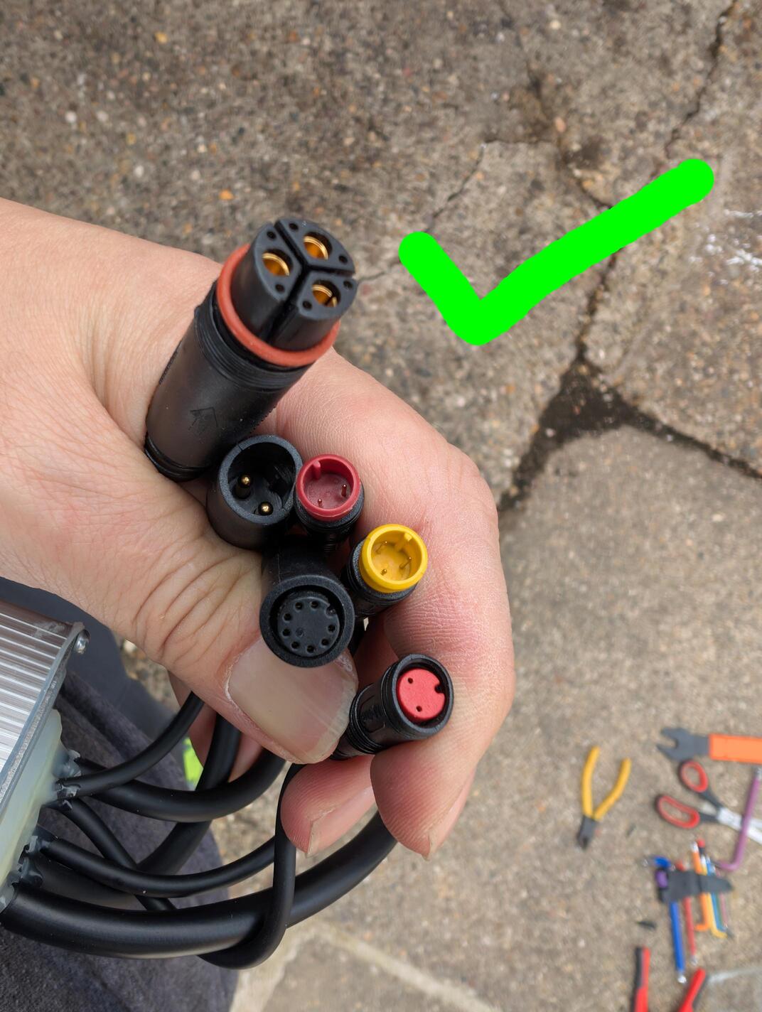 Thing is, I ordered the Zebra D5 controller because my bike has "D5" on the top bar (photo attached).... but is it really a D5 or just the older Zebra model? I've included photos of my old controller connectors (with green tick) and the ones I got posted (with the red cross).. anyone identify the connectors to the bike? Also anyone know the wiring diagram for the red cross controller --- maybe I can rewire with the old controller connectors?