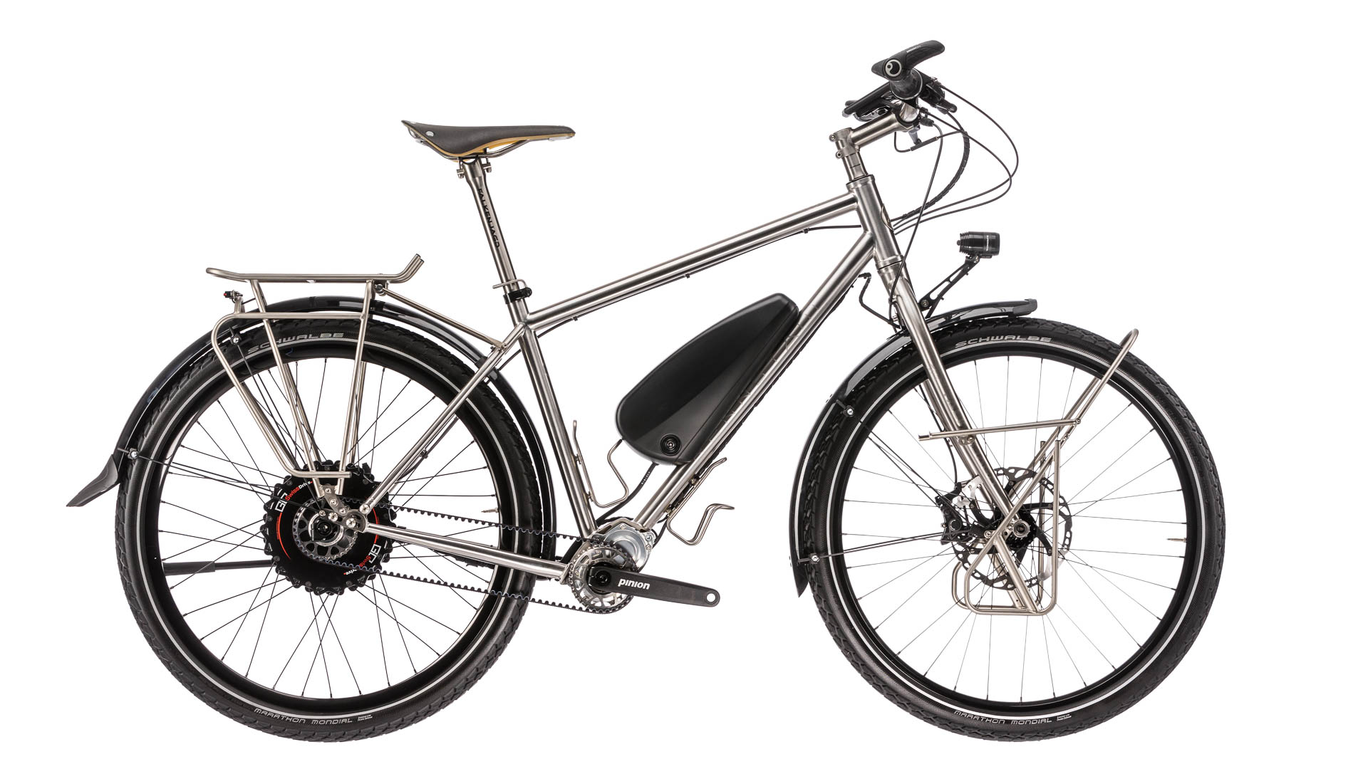 Pinion drive (C12 or P18), integrated rear-wheel drive that can be easily exchanged for a normal wheel, in emergency, or as needed, and still maintain gearing ability... Or upgrade the Z20 drive rear wheel in future as the tech develops further. Very important with this still emergent tech!!! Btw, I know Pinion energy transfer is a bit less efficient than Rohloff but it's a non-issue for me personally.