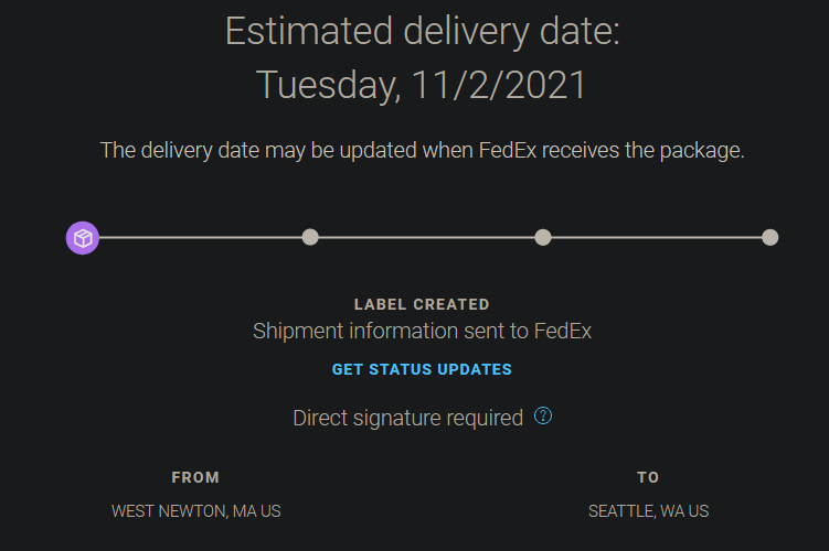 I have to laugh as I got notice last Monday that my Hydra was due to arrive October 29…then October 30 and quickly October 31 (still says that on FedEx page). So I called FedEx and they told me it is due to arrive to my house today. About 15 minutes later I got the update below….