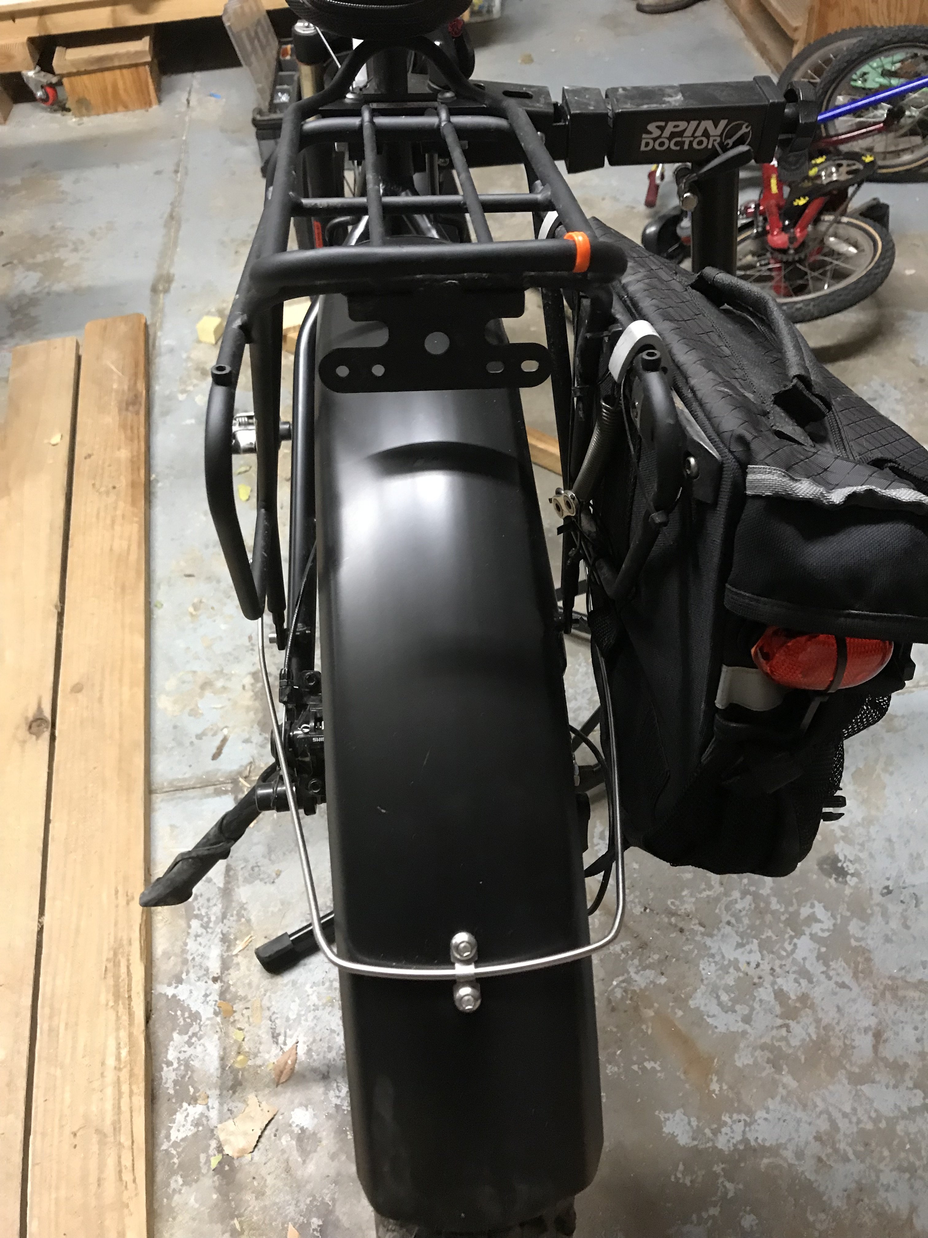 I've got about 100 miles on the bike so far and I'm loving it! I ride most of the time in ECO or 1 since that easily puts me in the mid-20's and helps reduce the battery draw and use. It's cold here now (mid teens) in the mornings and just a little better in the afternoon. Some of the changes that I've made already are an accessory bar that I mounted the light on. I like it up higher. I just drilled a hole through the aluminum mounting bar and bolted it to that with the existing hardware. I also put on an Ibera fat bike rack and it fit almost perfect. Since I didn't need the spacers I had to get shorter bolts, but were easy to get in stainless at the local hardware store. I plan on getting their rack pack with expanding panniers. I also got a handlebar bag to hold a couple of tools and the battery key as well as my phone. One of my most needed adds was the fenders. I got the RadBikes full fenders for the RadRover and they required just a little bit of modification to fit great. The rear wheel is a little bit of a pain to take off since I'm used to non ebikes. For the rear fenders I drilled out the rivets and drilled a hole in the plastic at the right point for the upper cross mount, but that was all. Since I will use this year-round for commuting in snow and rain the fenders will be fantastic.