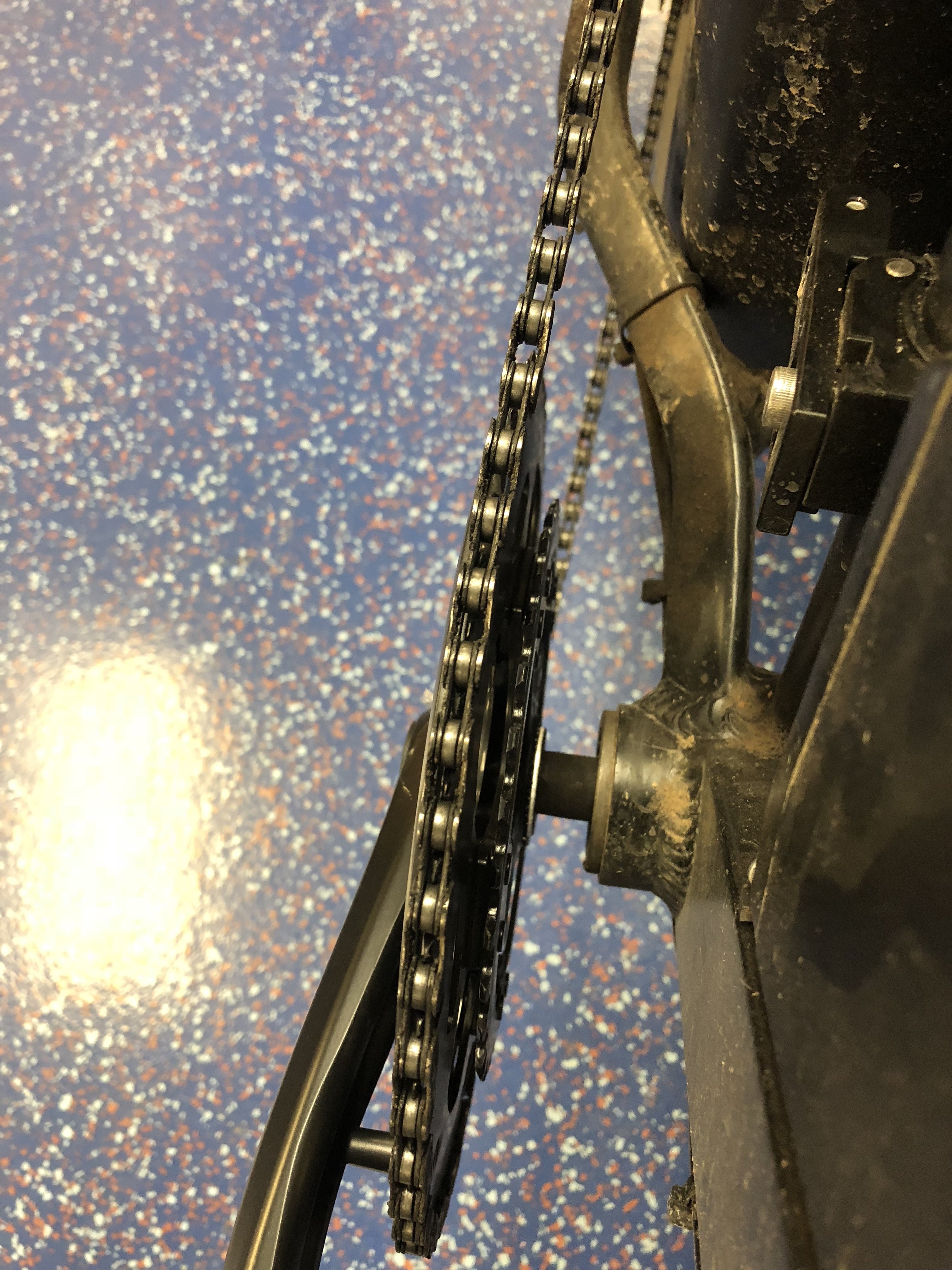 My next addition is coming Monday and that's a chain keeper, the ChainSpy2. I've noticed that in first gear if it's bumpy and I'm pedaling the chain might jump off and get caught between the ring and the plastic protector. I understand that this is often a problem in 1 by setups where the chain can't quite flex and there's no derailleur to help keep it in place. Not a unique thing the the HF. The other way to help would be to get a WolfTooth wide/narrow chainring. But I think I'll wait to see how the ChainSpy2 works and hopefully wear out the current chainring before I go to a narrow/wide setup.
