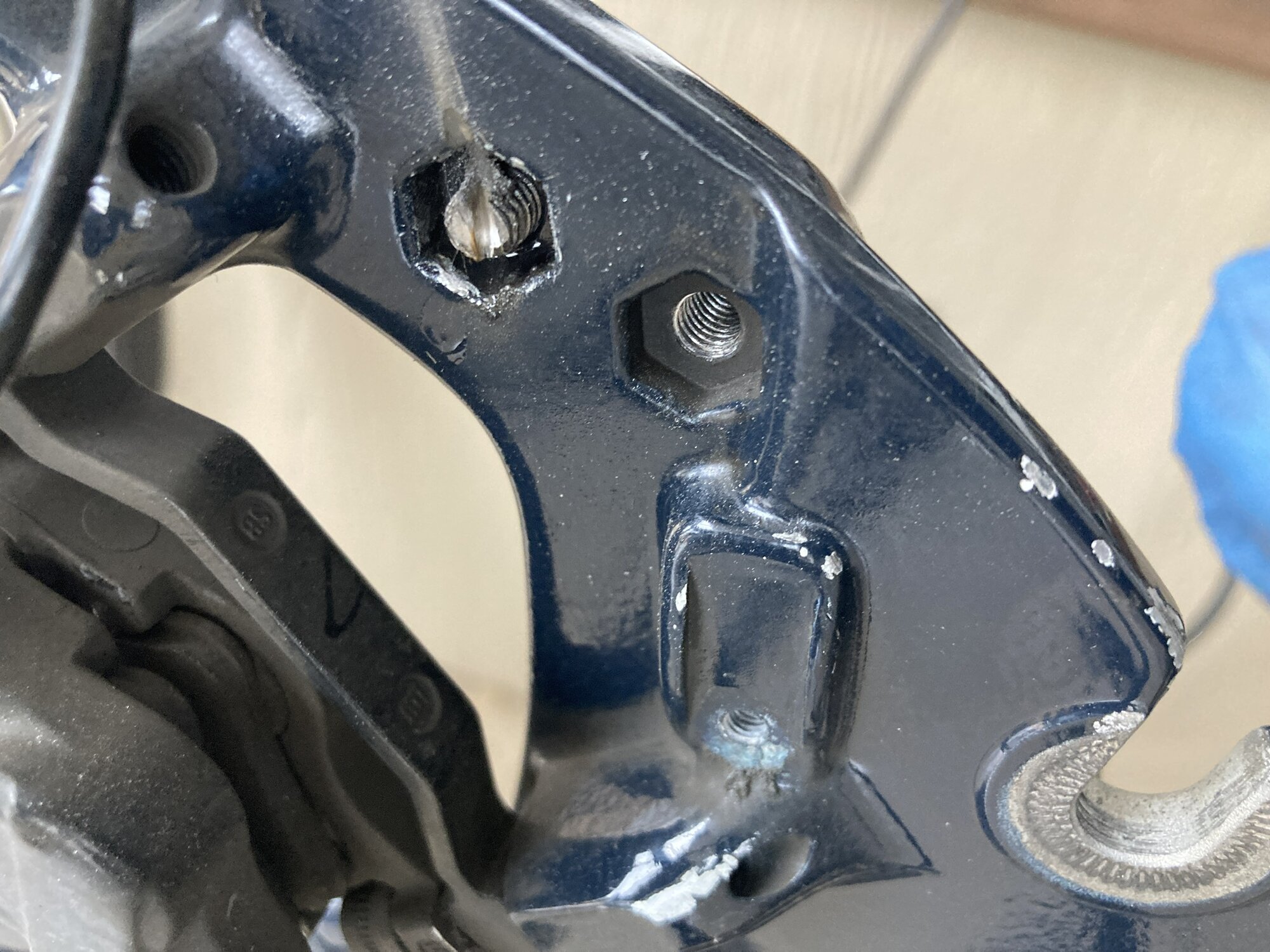 The rear hole’s threads were intact so I used the longer 30mm bolt and was able to catch and tighten into a locking nut.