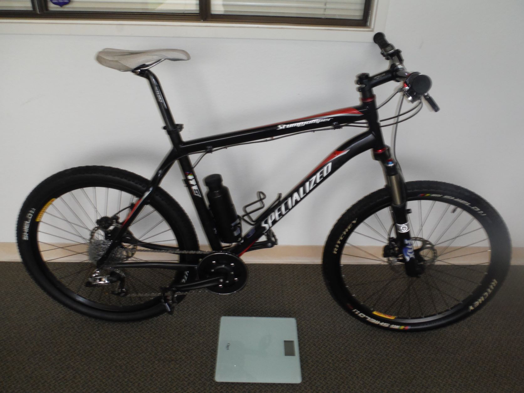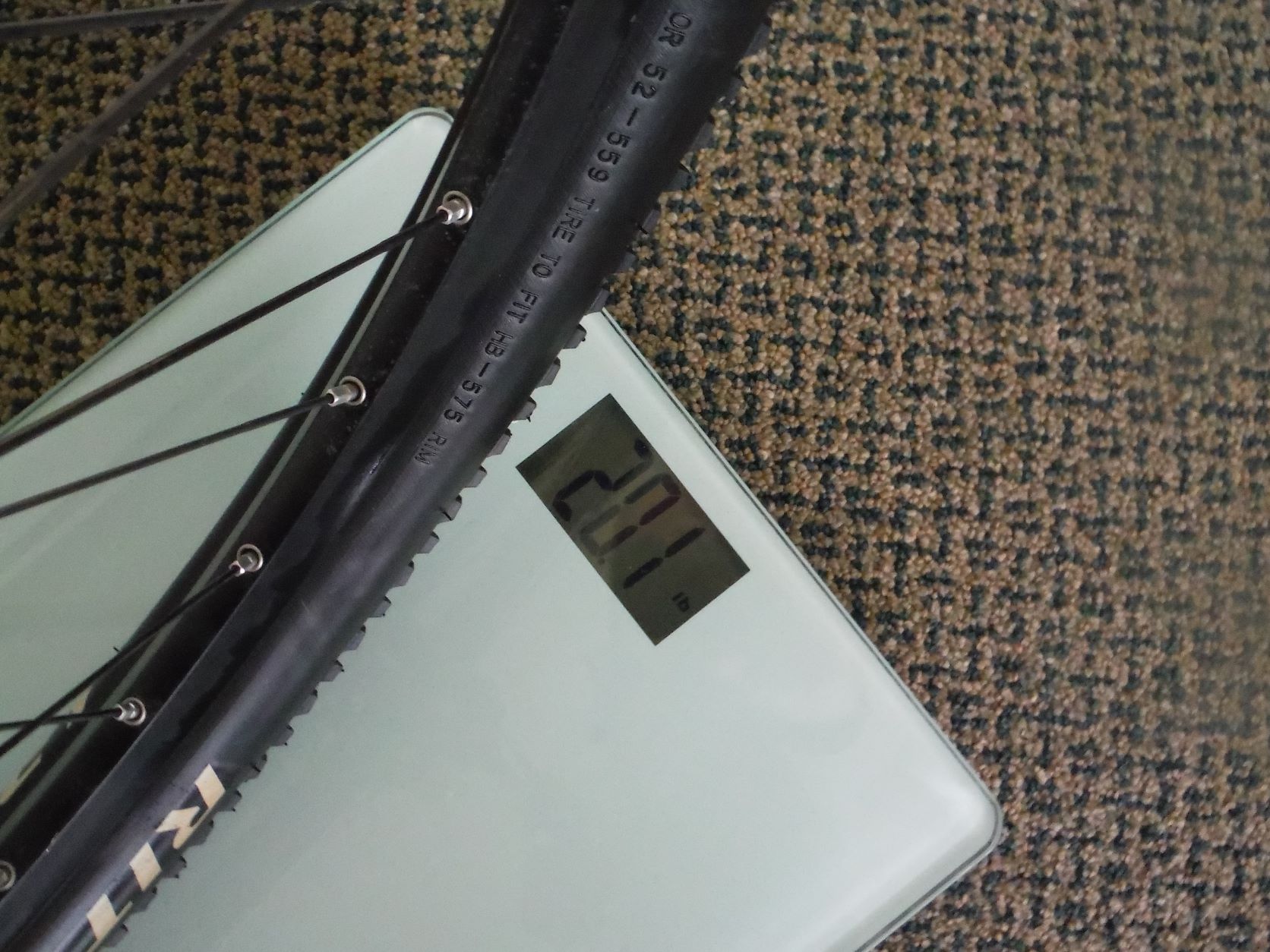 Here is the Stumpy on the scale. I am happy with the weight distribution. It is 20.1 front and 19.5 to the rear.