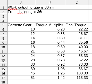Next I took a look at the mid-drive Bafang BBS02 with same battery, controller, and wheel size. Being a MDM, gear ratio is now a consideration as well. I used my ebike's gearing as an example, 46t chain ring and a 11x42 cassette. To consider higher speed efficiency I went with the