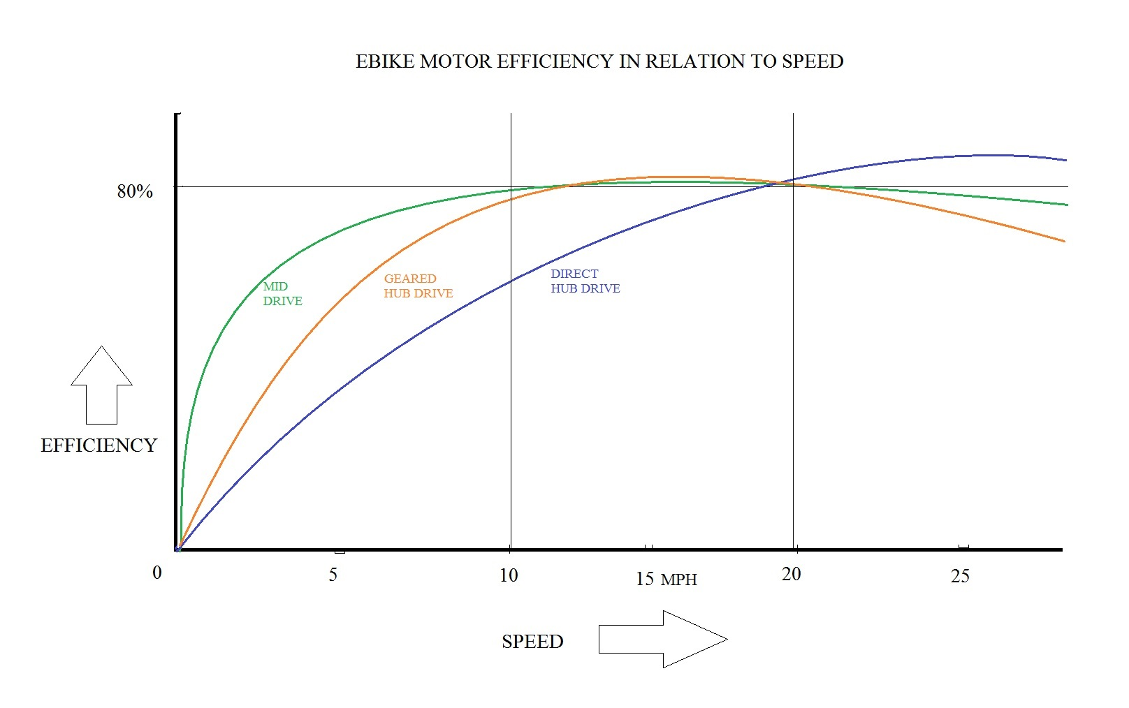 I do agree that hub motors are better for some uses, mid-drives for some others but I think that motor efficiency vs speed needs a bit more clarification. I ran the Grin Motor Simulator for their