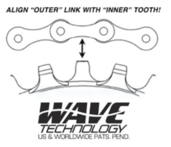But what baffles me most with your Praxis wave chainring are the abrasions on both sides of your chain teeth shown. It shouldn't be like that, and it might be due to an incorrect chain line. I have marked your abrasion in red (regrettably "normal" on that side with wave system) and yellow (unusual on that side, even with wave system) in your picture I'm attaching.