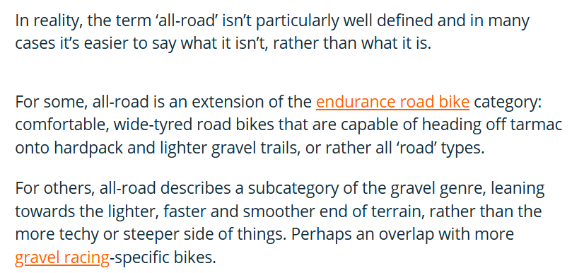 Very interesting. Wonder how much my Vado SL 1 frame deviates from endurance geometry?Regardless of what some may assert there is no official definition of gravel bike or even all road etc. Just shared overlapping characteristics that the bike brands use to apply a marketing category to. Also these 'definitions' blur and shift with time. How many gravel bikes in 2020 came with dropper posts? Now that has been put forth as a defining feature in 2025.