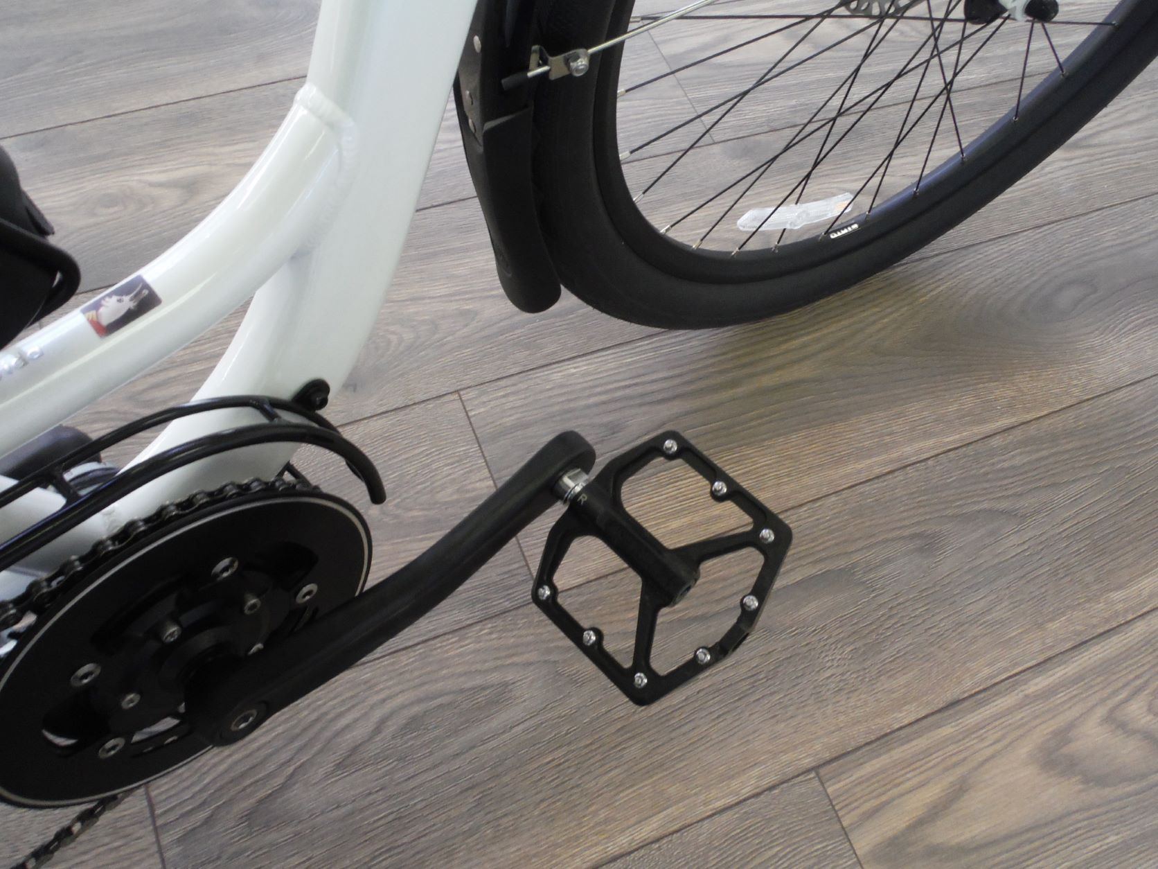 The HAL series of Motoboecane USA bikes is sometimes criticized for having an older geometry, but a lot of non-pros who don't ride competitively find it more comfortable, a better all-rounder. The Ultra e-Adventure is an outlier even in Motobecane USA's HAL lineup. There are almost no reviews available about them, and no literature available online-- I was pretty nervous pulling the trigger. I guessed by exhaustive research that in a stock colnfiguration it was just under 50 pounds, and that turned out to be exactly right. I got it down to 46 by adding a CF seat and going tubeless (and .2 of an inch narrower) with the tires.