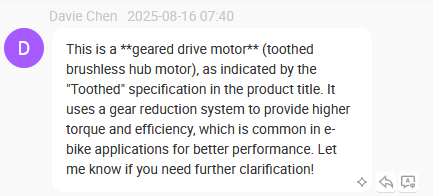 Hope this helps anyone that cannot find information about this motor. I will be testing this motor and add more information when I can in 30-60 days, comparing it against the next closest competitor the Bafang G062.