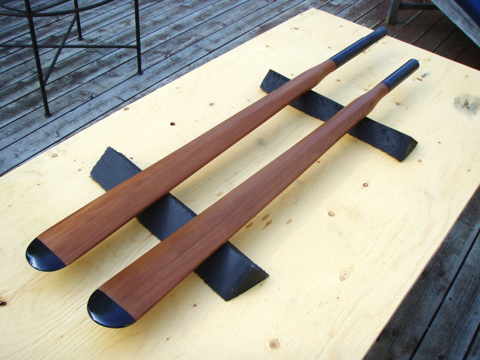 Werner paddles are very popular here, though I don't own one. I do have a greenlander, but have never used it. My go-to paddle is patterned after a Mackenzie River paddle that was described in a Sea Kayaker article by David Zimmerly about 30 years ago. It has a long narrow blade, somewhat like a rounded willow leaf. I put a slight crown on the back, and a moderate spine running down the face. The shaft is hollow, so it is quite light (walls are only about 3/16"). Doesn't tire me at all in a long day's paddle, and I like the fact it has no flutter when you take a hard stroke. The crowned back gives it very strong lift with beautiful laminar flow when you scull with it. But it is getting scarred up with long use, and I have to refinish it occasionally. Instead of fiberglassing the blade tips, I dipped each end in a pool of epoxy and let it soak in, then ground down the epoxy when it had cured. Seems to protect the tips very well. When I have tried glassing the tips, the glass always wears off before long. Oh, woods are laminated red and yellow cedar for the blades, and Sitka spruce for the shaft (which runs all the way to the ends). I sometimes swap paddles with a companion, but am always glad to get mine back. I guess we get used to whatever we use all the time.