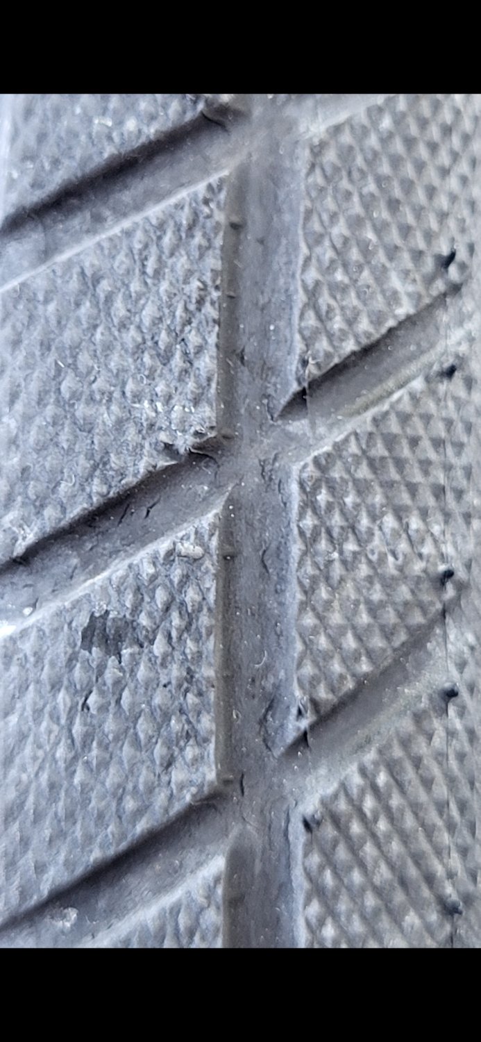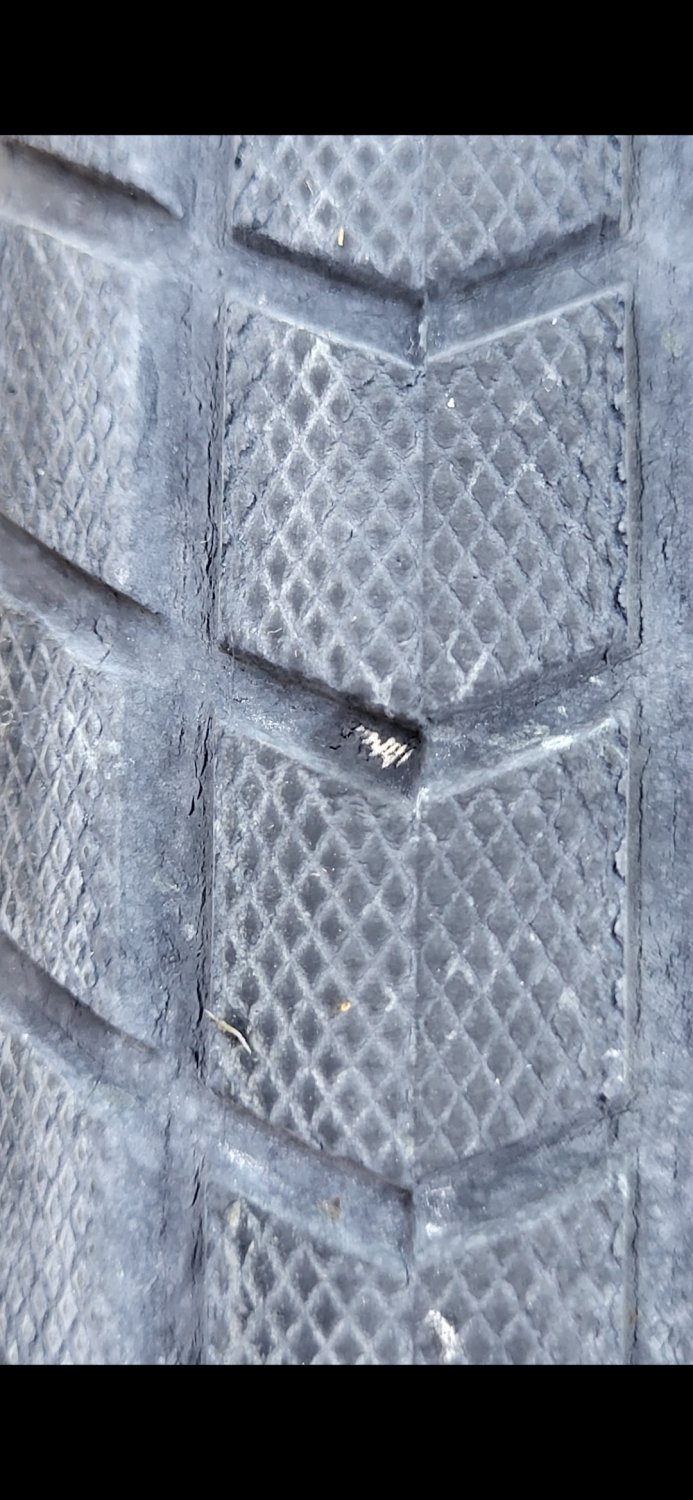 Either way that rear tire needs to be replaced, and it needs to come off to take a picture of the white stamp inside for warranty anyway.