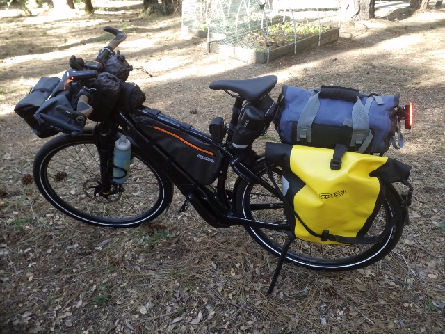 That's an impressive amount of storage. More than I want to pedal uphill, indeed.I think just the frame bag is as much as I want ...I use an Ortlieb frame/triangle bag that fits my men's med Vado perfectly. Very sturdy waterproof bag.