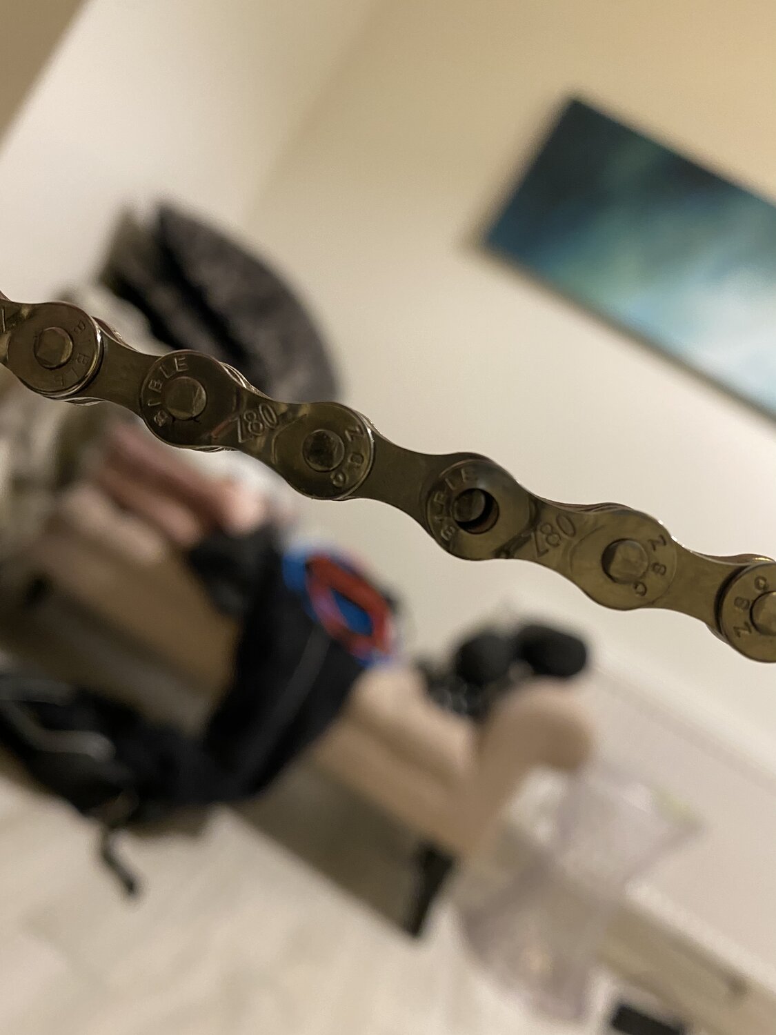 It came in 8th gear, I changed through them down to 1, then it wouldn’t change up. There appears to be a rogue link, looking down and from the side. Also.. unsure if you can see it, or if it is right, or a fault.. if you look down the length of the chain it doesn’t run straight.. it’s slightly curved.. as for throttle, it was fine, it got me up to 15.5 but no more.. but now it’s about 7 max, a bit more downhill.