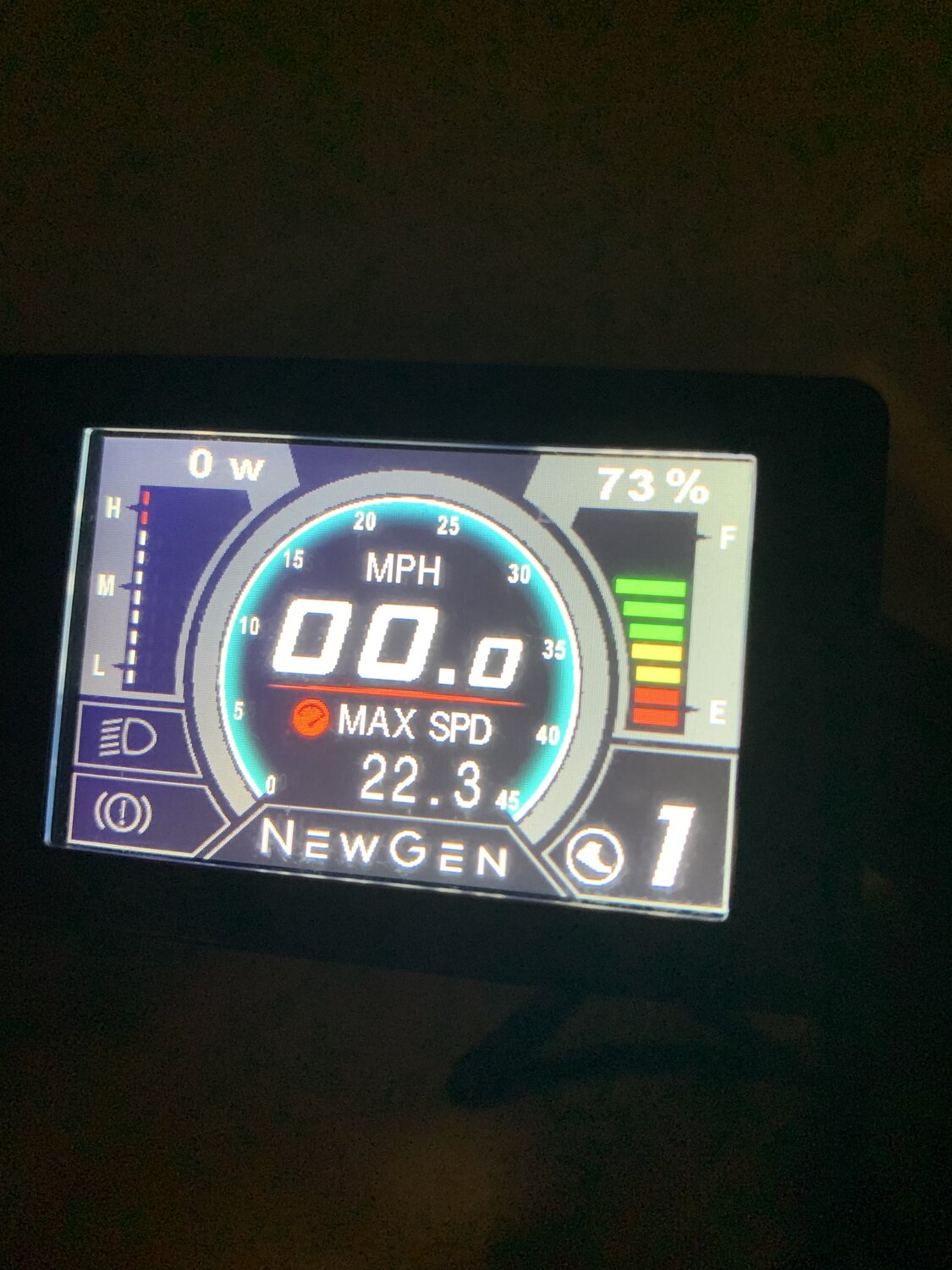 Some more pics, managed to get out today for an hour or so. Bike looks amazing.. Great fun to ride, everything works as expected except for the throttle. The bike is restricted to 15.6mph, the motor cuts out when it hits that speed.. the throttle is supposed to prevent the motor cutting out and allow the bike to reach max speed but even with the throttle the motor is still cutting out at 15.6mph. I’ve called NewGen and they’ve said that they will get back to me Monday with the solution.