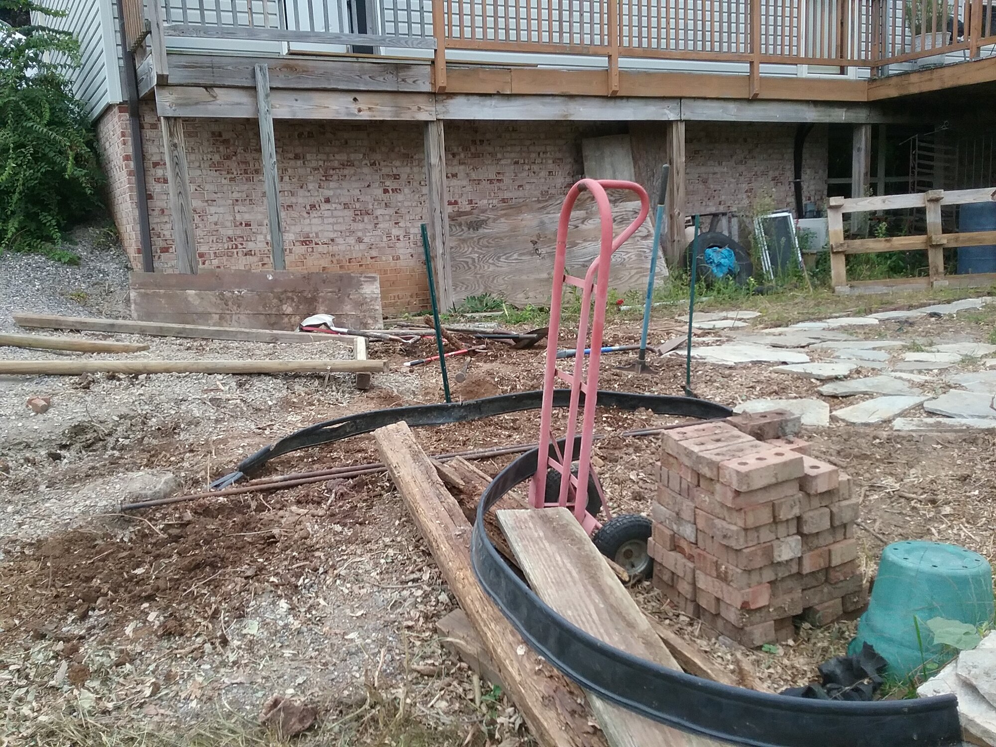 @john peck See post 42 see what was in the way . Took it out with a friend with a chain saw and me weilding ? a giant sized breaker bar left over from my youth.@Buckdubay and @Browneye you will notice that although phase one "the little ramp" is done, not a single d@mn patio stone is in it's final resting place yet. This" 10 by 12 " patio is like a 3 hr cruise to Gilligan's Island...