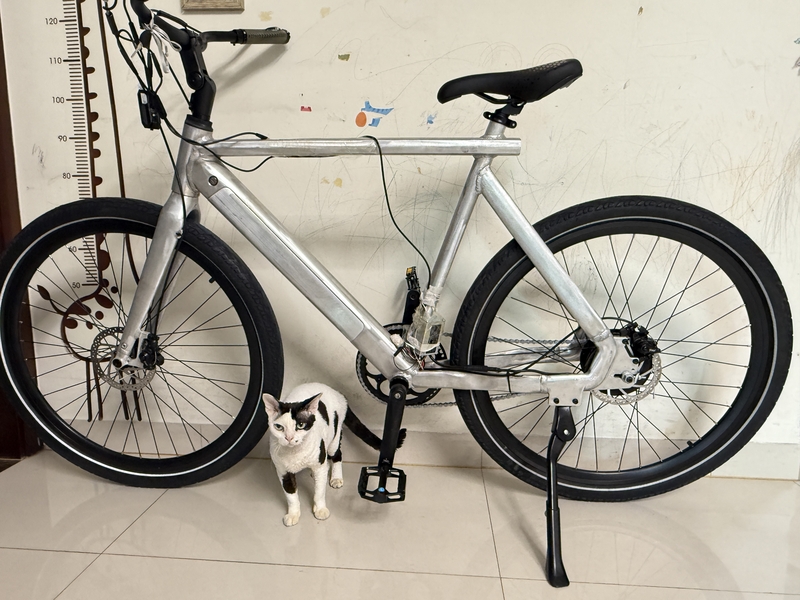 3. The "Garage Project" (DIY)Recently, I’ve gone down the rabbit hole of DIY e-bikes. I attached a photo of my current work-in-progress—it's a raw aluminum frame build with a mid-drive motor. As you can see, my cat is the chief inspector for this project!