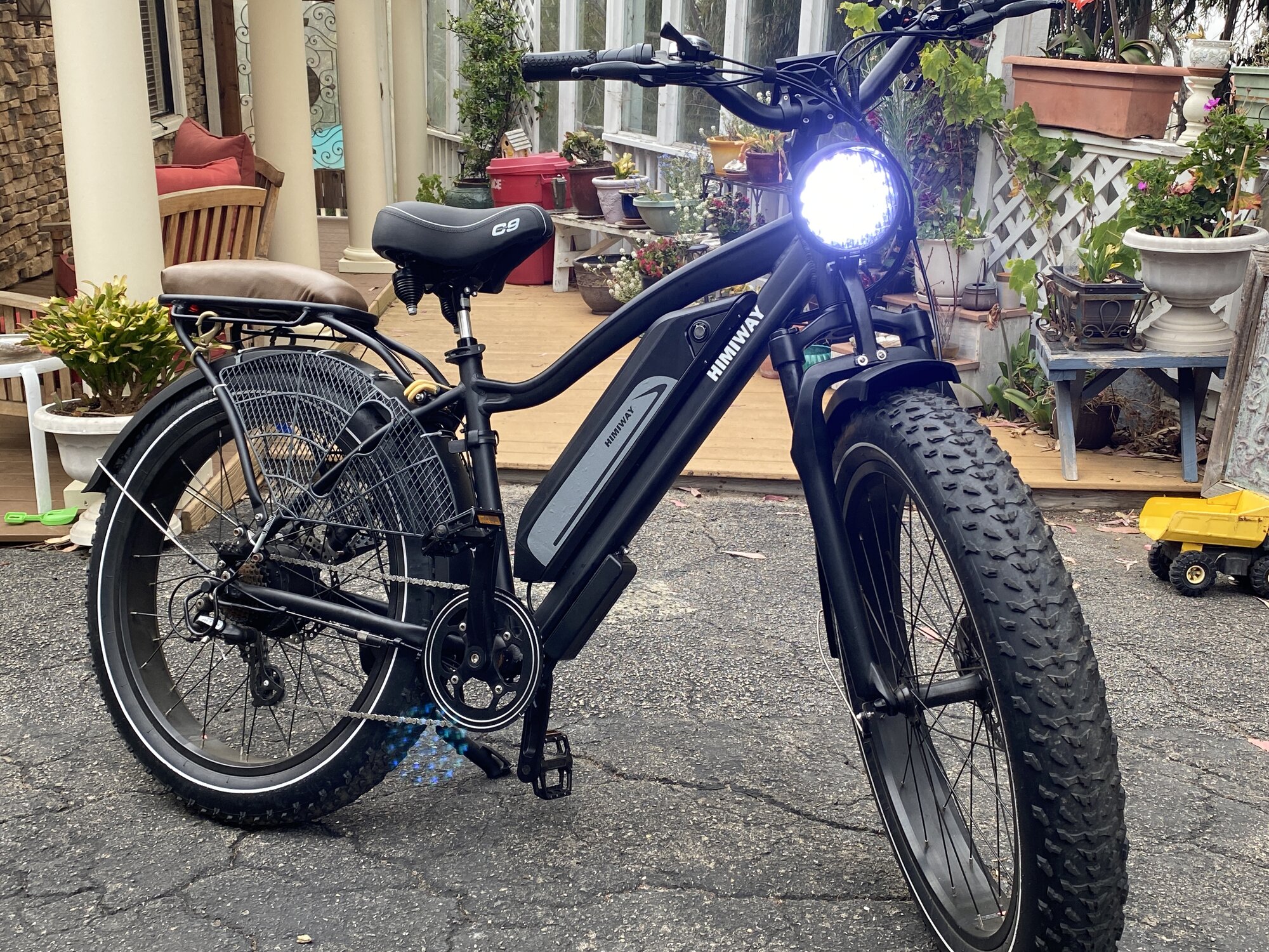 New motorcycle size LED headlight on my Himiway, check out the rear seat w/foot pegs. Also waiting for my wife's new Lectric XP2.0 to arrive.