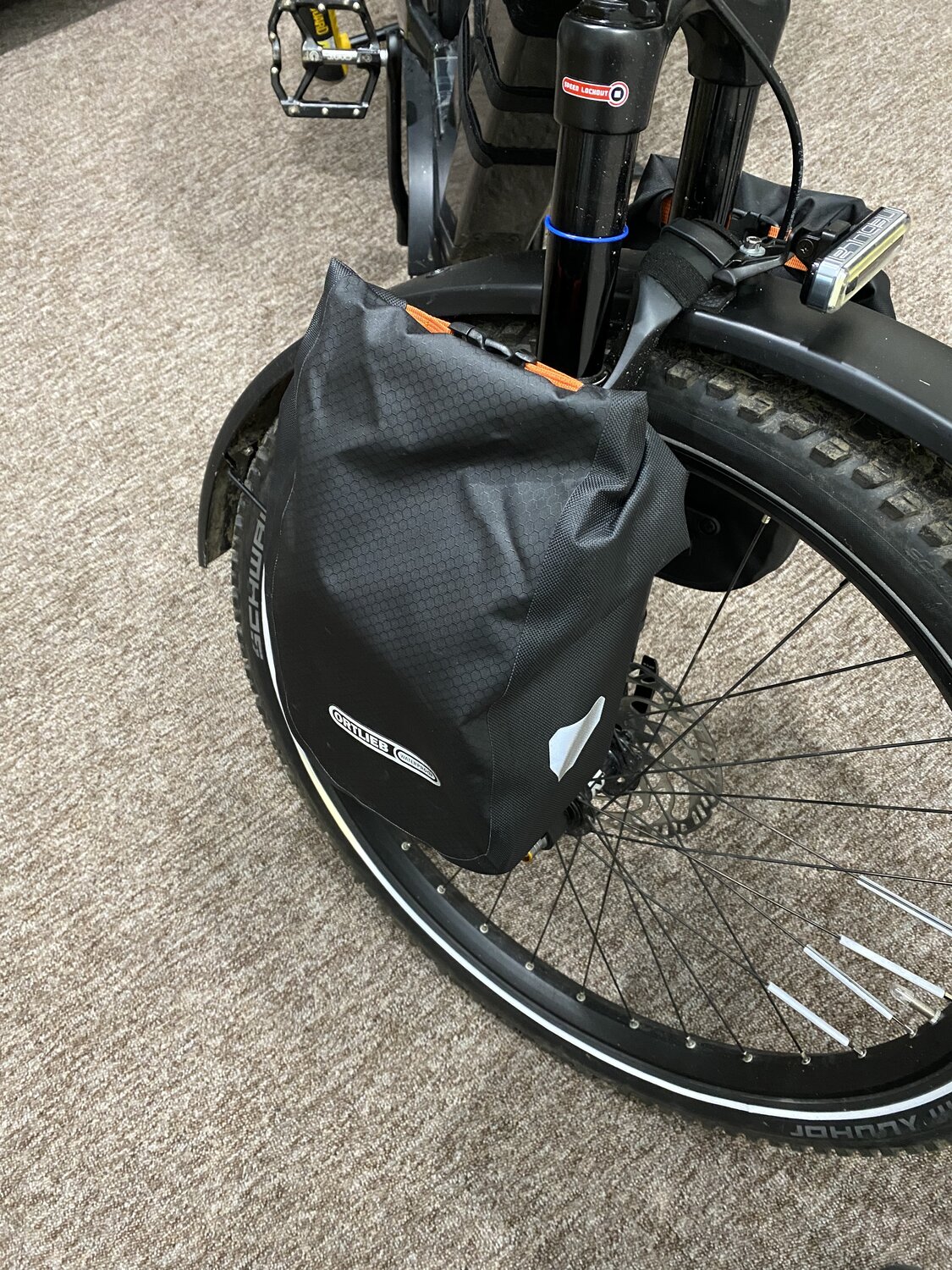 Tried the Ortlieb front fork bags out today and I'm pleased to report that they worked well. Nice and stable, with no effects on the ride. However, they were a bit noisy as the contents rattled a fair bit.