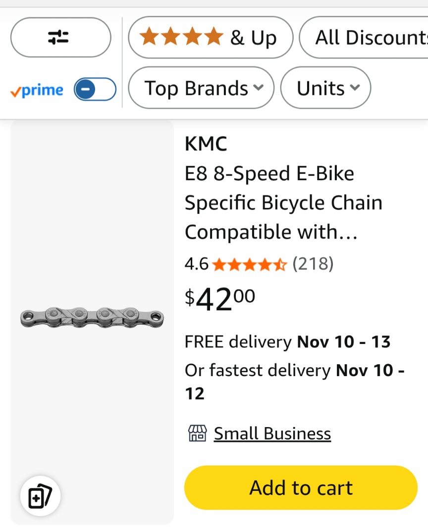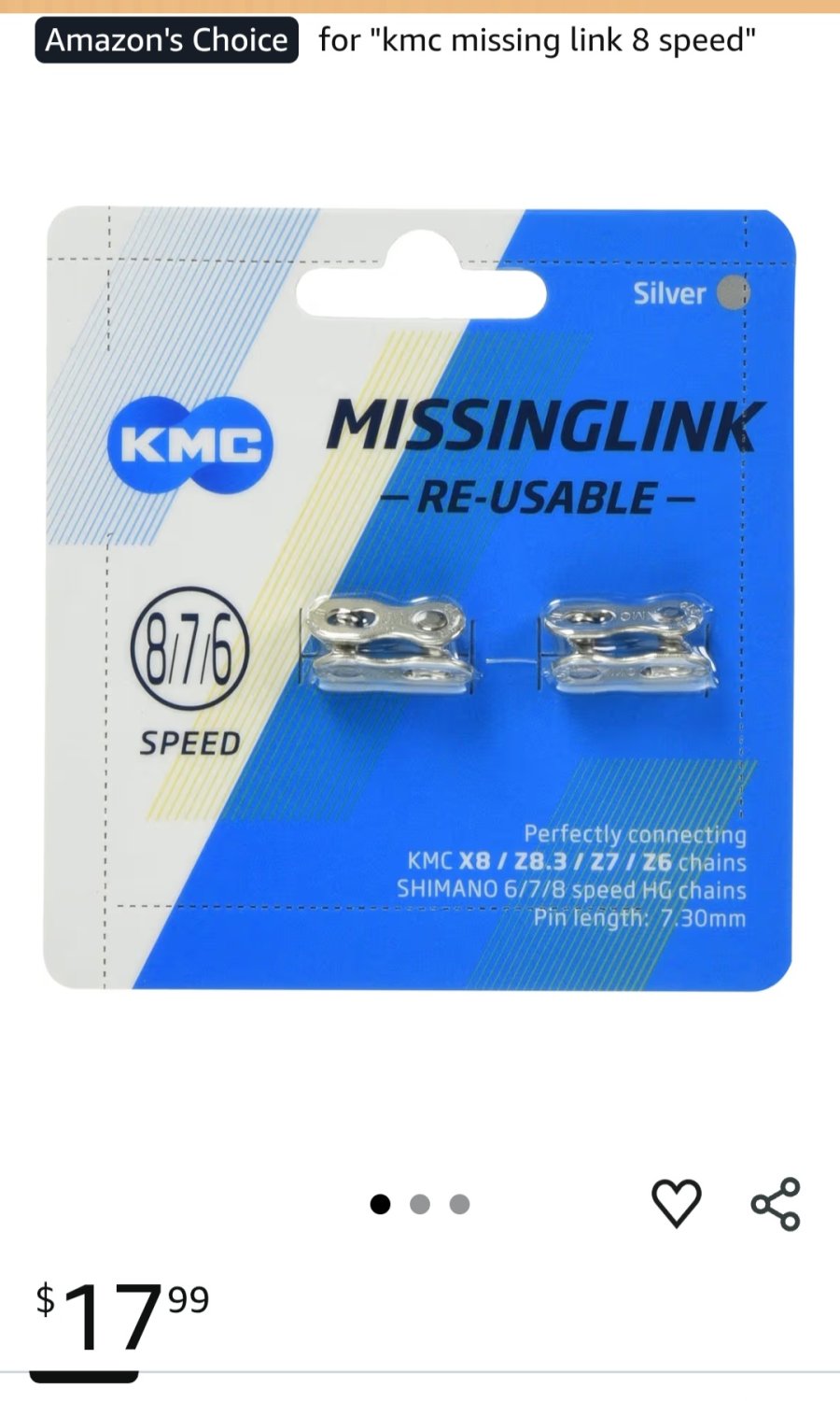 Here's some of what Amazon.com and Amazon.ca have to offer for KMC 8 speed chains,..
