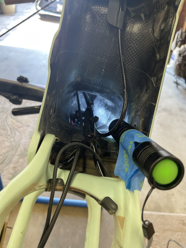 So I removed the motor and checked out the inside area where I thought I could mount a flush style plug ( similar to the SL series bikes).